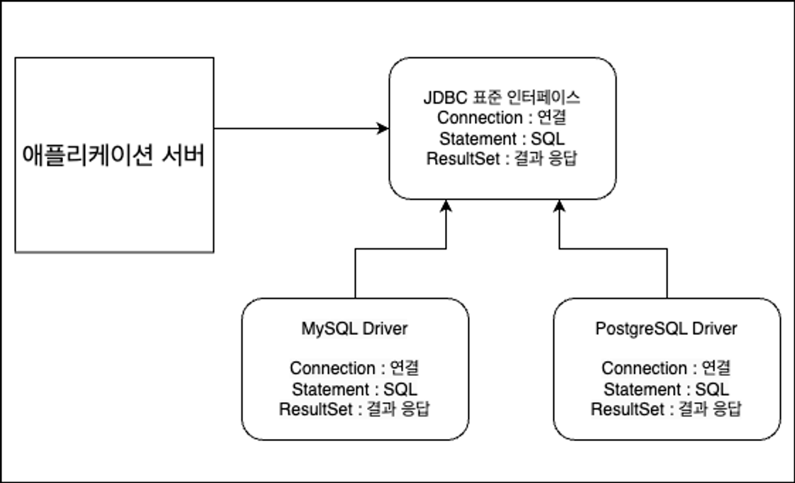 위와 같은 문제를 해결하기 위해서 JDBC 표준 인터페이스 등장했다.