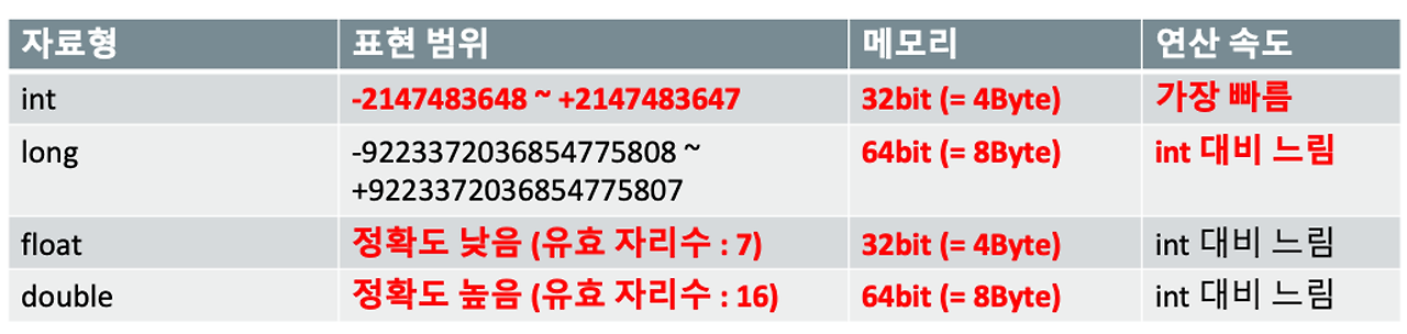 - Java에서 실수는 float 과 double 데이터 유형으로 표현된다.