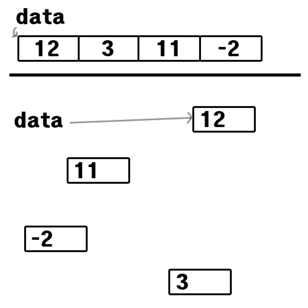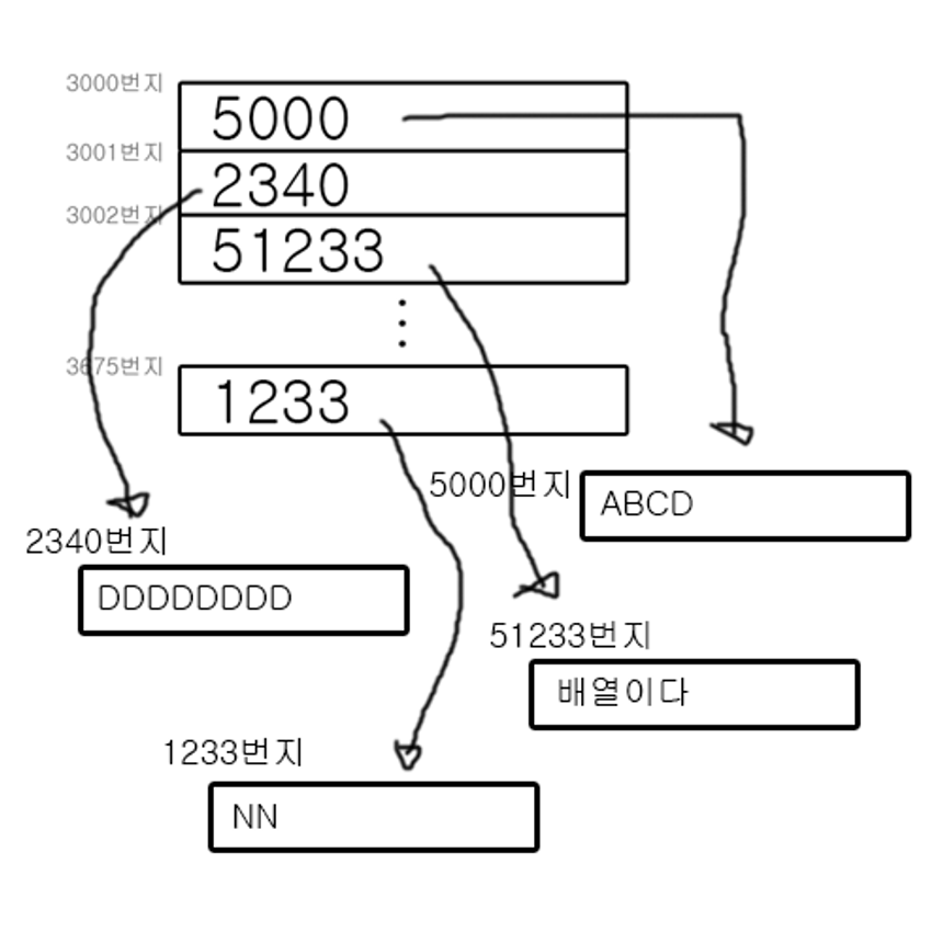 - 배열은 연속적인 메모리 위치에 데이터를 저장하는 자료구조