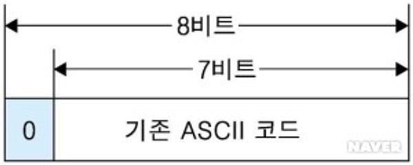 - ASCII 코드는 영어 알파벳, 숫자, 특수문자 등을 포함한다.