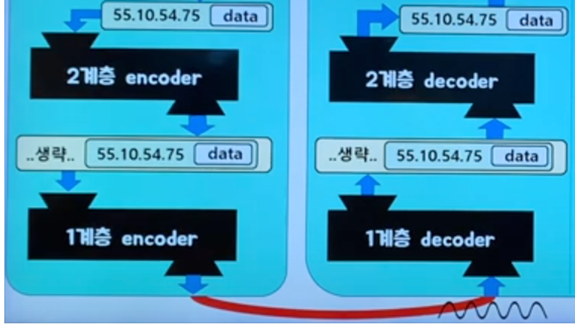 캡슐화(송신) : 하위로 내려갈수록 캡슐화가 진행이 된다.