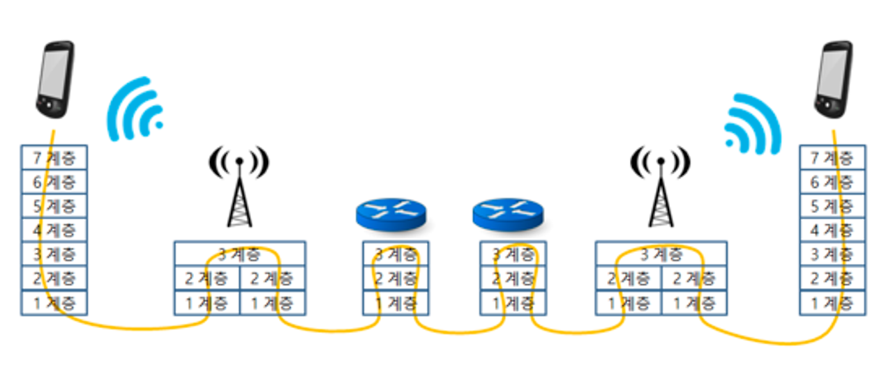 - 네트워크를 계층화 한 7계층은 각각의 규칙을 갖고 네트워크상에서 데이터를 전달하도록 한것이다.