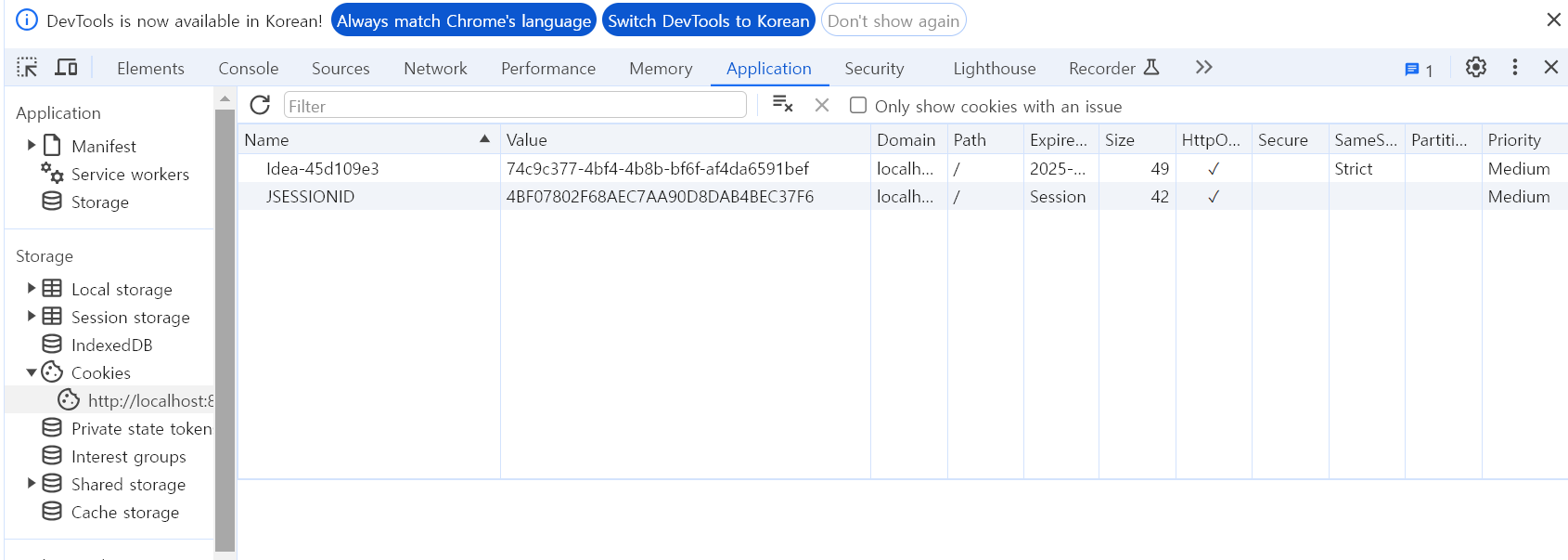 위와같이 Cookie저장소에