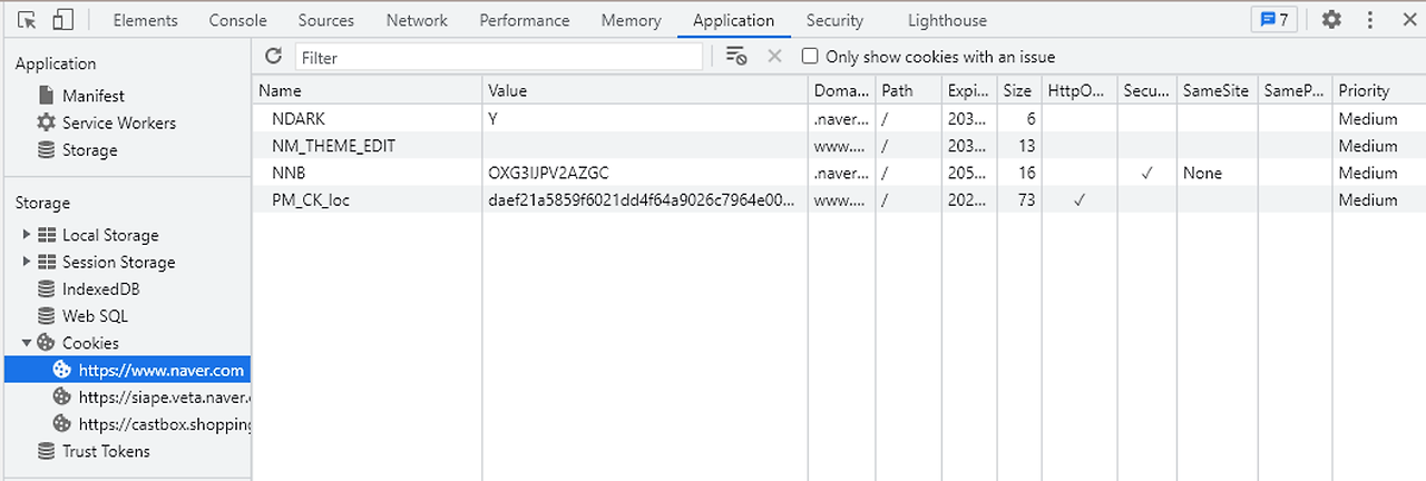 - Domain(도메인): 쿠키가 저장된 도메인