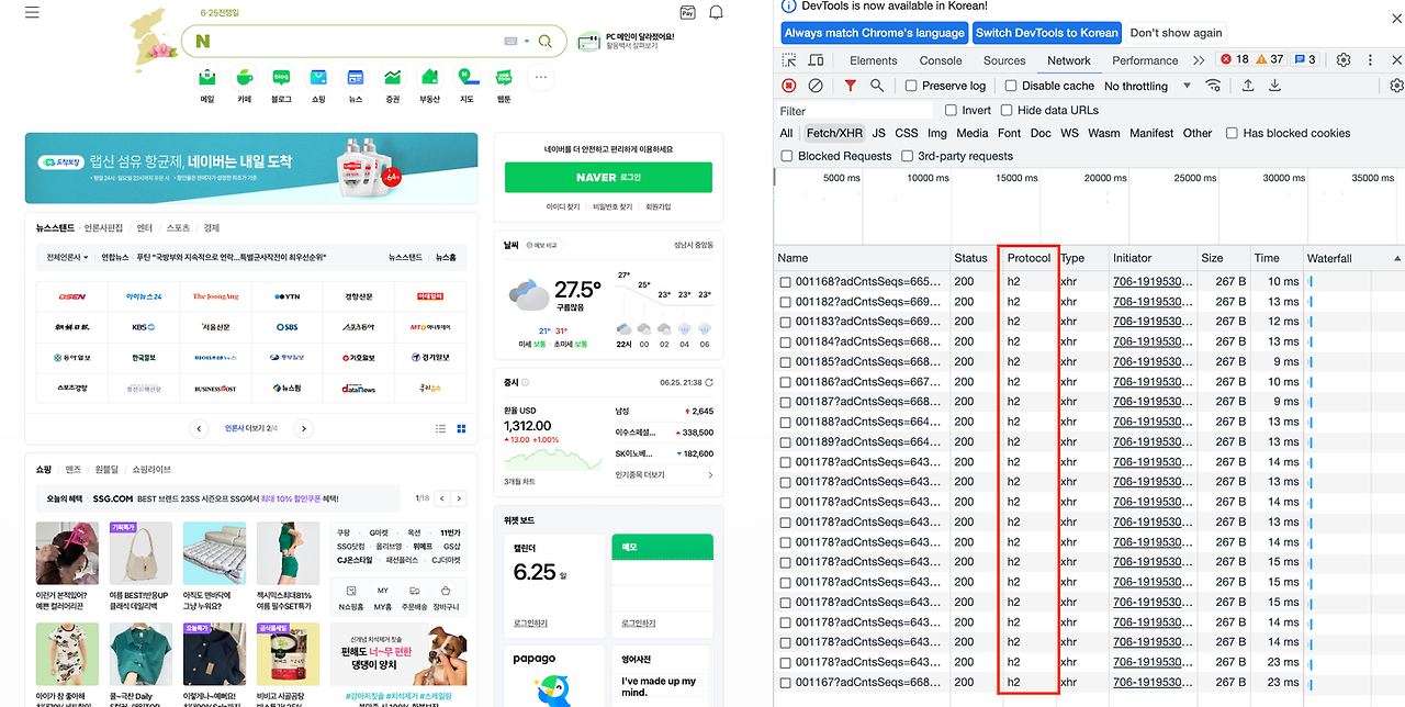 - 브라우저에 www.naver.com 입력