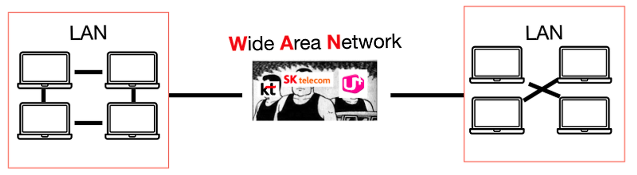 서로 떨어져 있는 LAN 사이를 전용선 등으로 연결한 광역네트워크