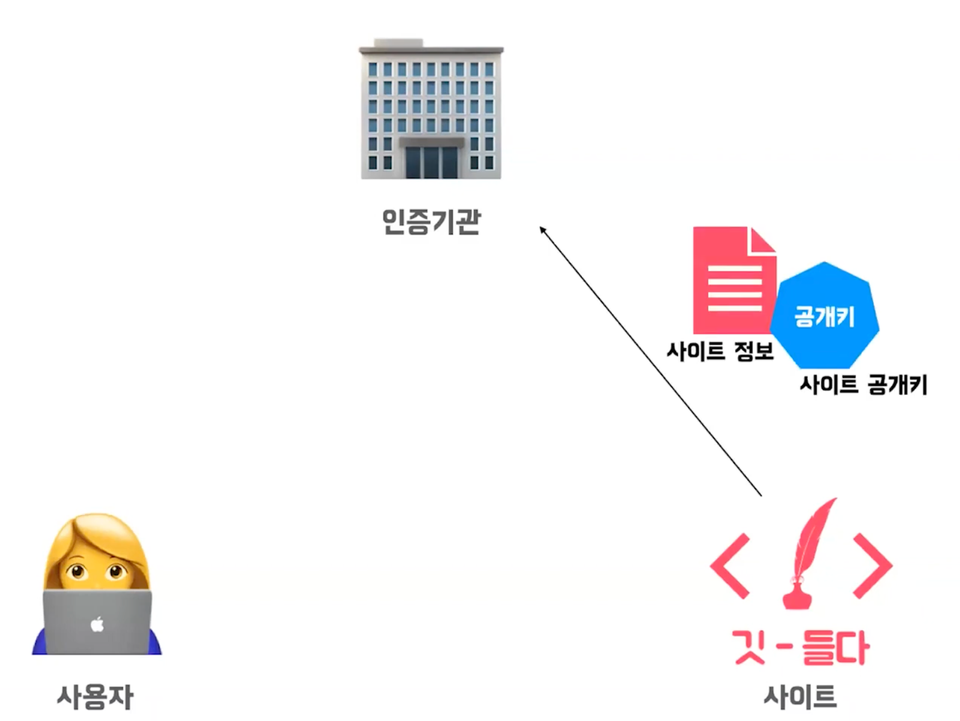 서비스를 제공하는 서버는 CA에 자신의 도메인 정보와 서버 측의 공개 키를 보낸다.