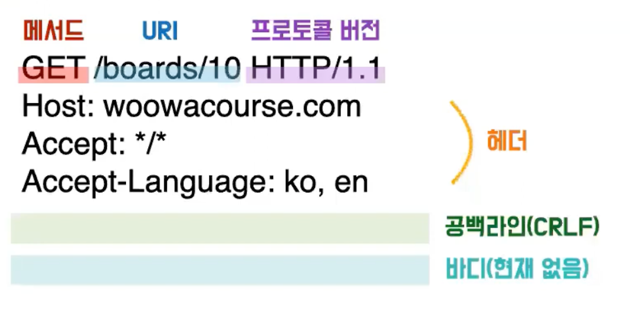 - HTTP 프로토콜을 사용하여 페이지 URL 정보와 찾아온 IP주소를 포함하는 HTTP 요청메시지를 생성하고 생성된 HTTP 요청 메세지는 TCP/IP 프로토콜을 사용하여 인터넷망을 총해 해당 IP주소의 컴퓨터로 전송된다.