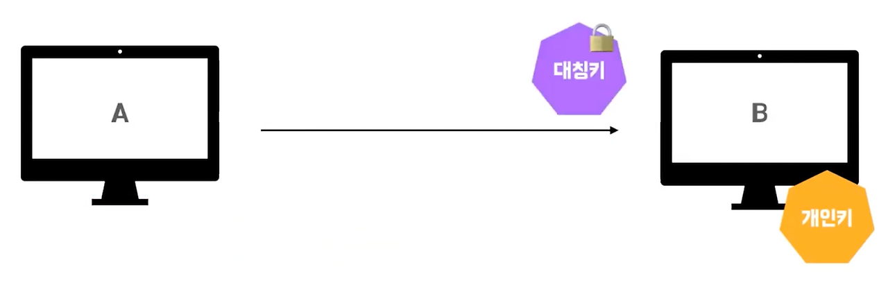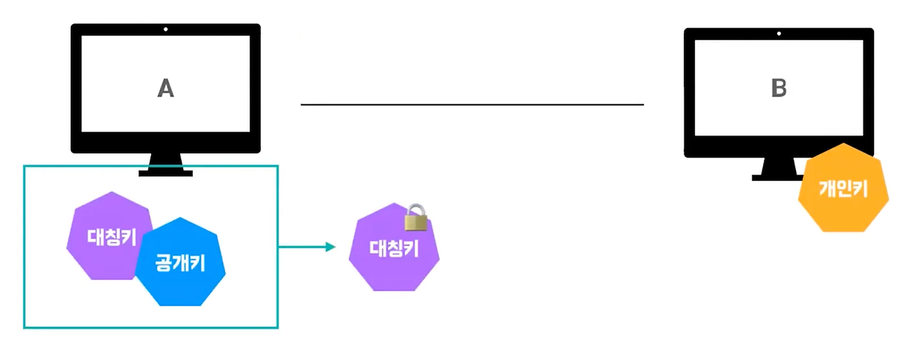 - 대칭키와 공개키or개인키(비대칭키)를 모두 사용하는 방법