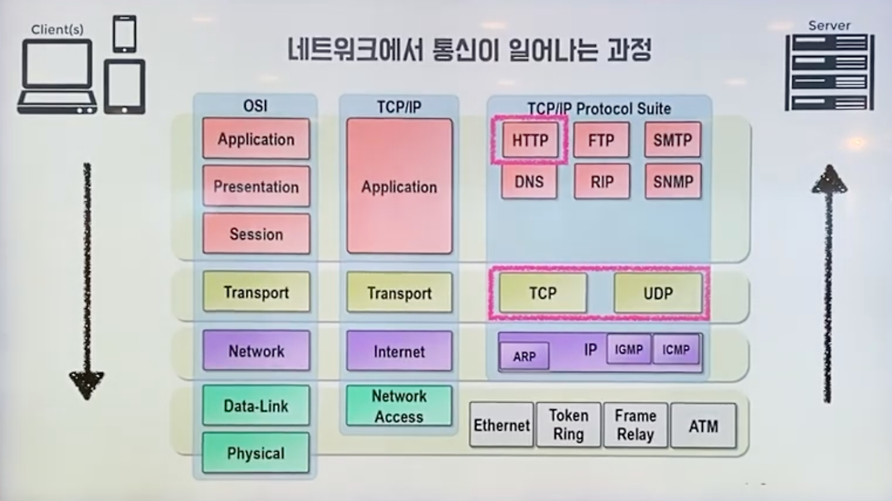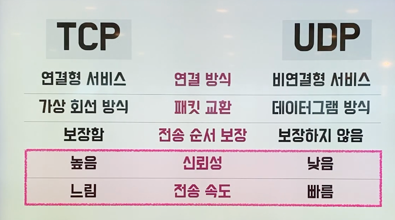 | 4계층 | 전송 계층(Transport) | 신뢰성 있는 통신 구현 |