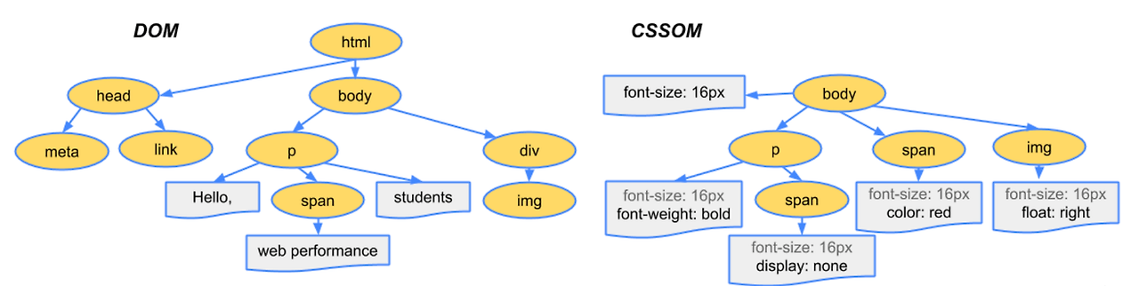 DOM Tree, CSSOM Tree, Render Tree