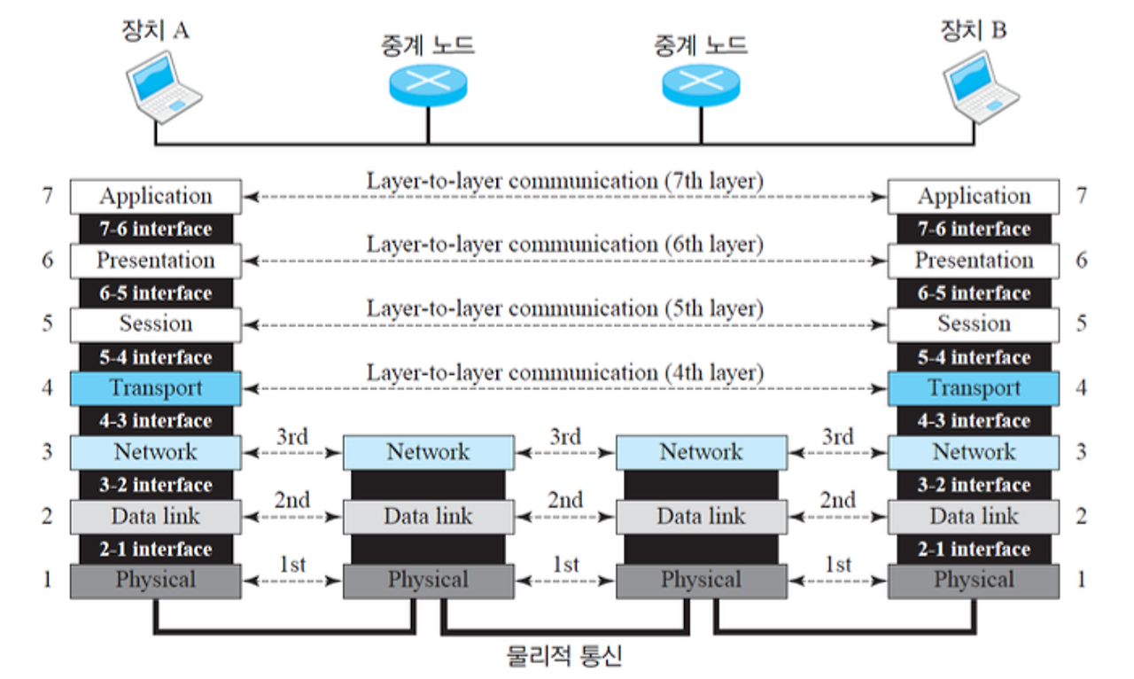 OSI 7계층 참조 모델 계층 대 계층 통신