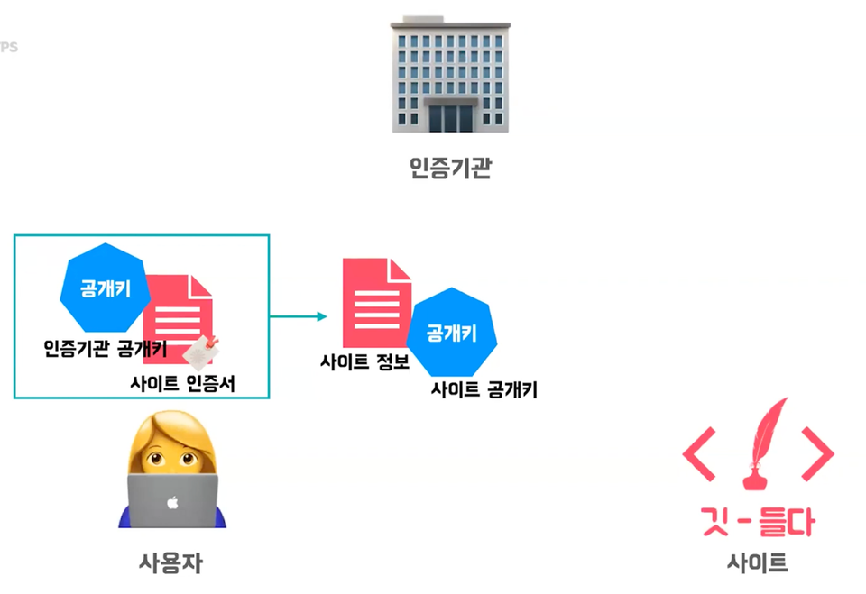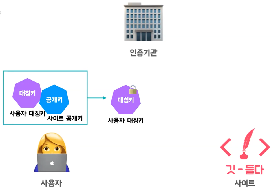 인증기관은 받아온 두 데이터를 자신의 개인키로 암호화한 CA인증서를 서버로 보낸다.