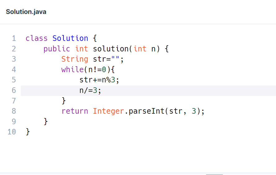 - str = 0021 이 됨으로 Integer.parseInt("0021", 3)은 "0021"을 3진법으로 해석하여