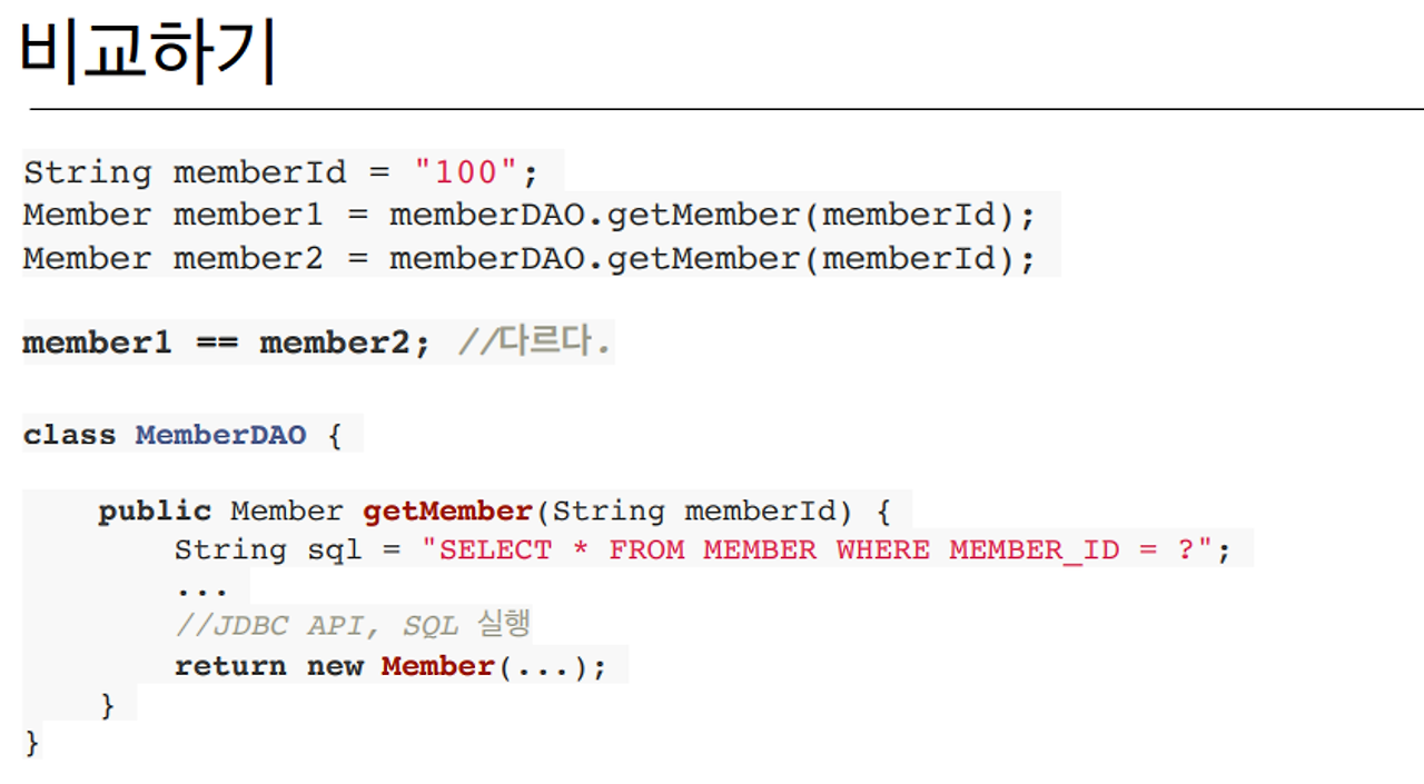 Member member 1 = memberDAO.getMember(memberId); 는