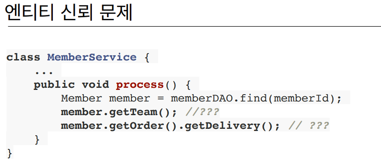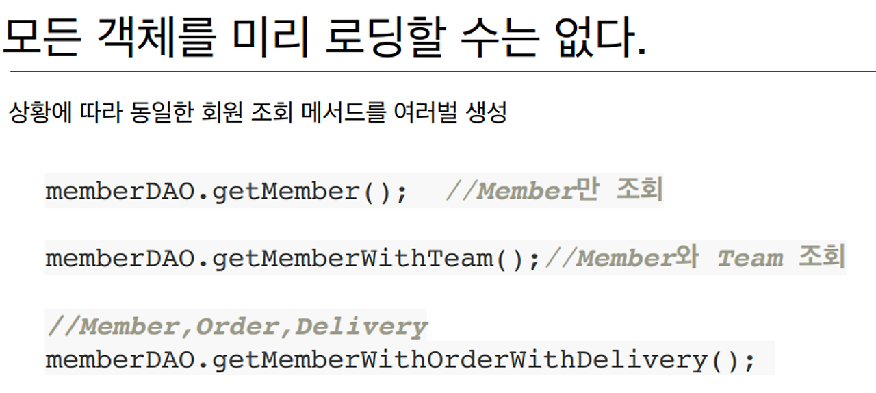객체그래프 탐색의 성질을 완벽히 사용할 수 없다.