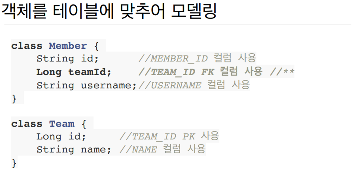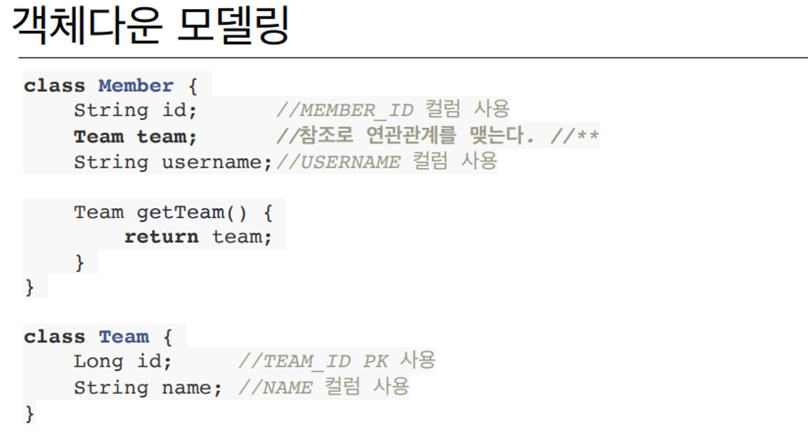 teamId 가 아닌 TEAM을 참조할 수 있어야 객체모델링이다.
