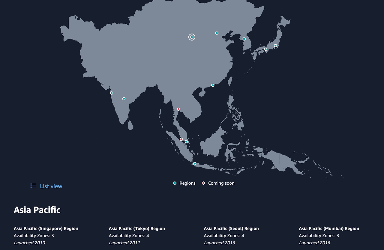 AWS 리전(Region)은 세계 각지에 있는 AWS 센터의 물리적인 위치를 의미한다.