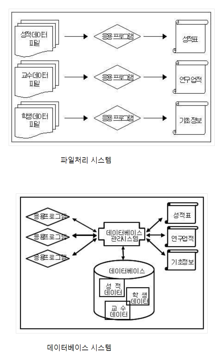 파일 단위로 저장할 때, 데이터 종속성 문제와 중복성, 데이터 무결성 문제가 존재하기에
