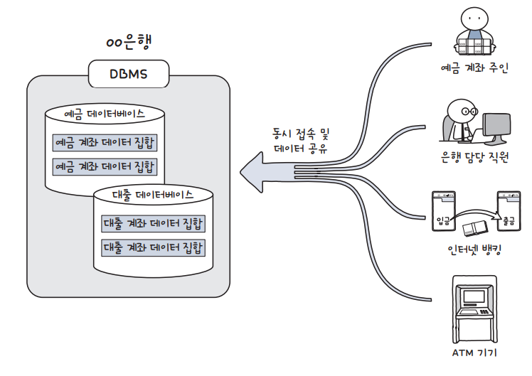은행이 가지고 있는 예금 계좌 데이터베이스에는 어러명이 동시에 접근할 수 있다.
