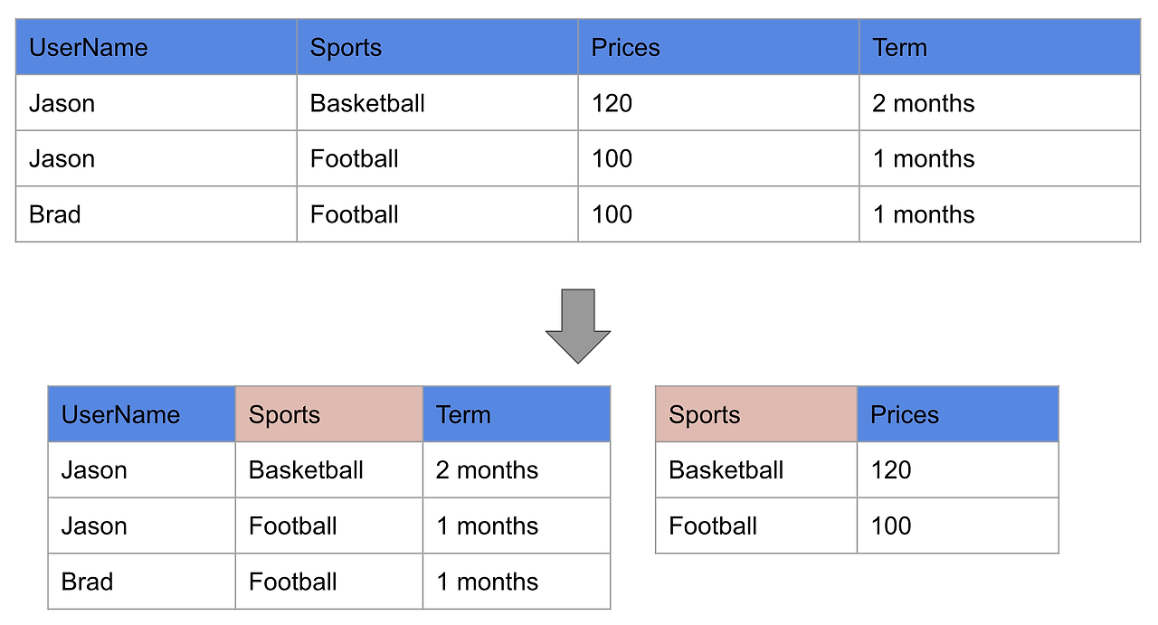 위 테이블에서 UserName과 Sports가 Term으로 묶여 있다.