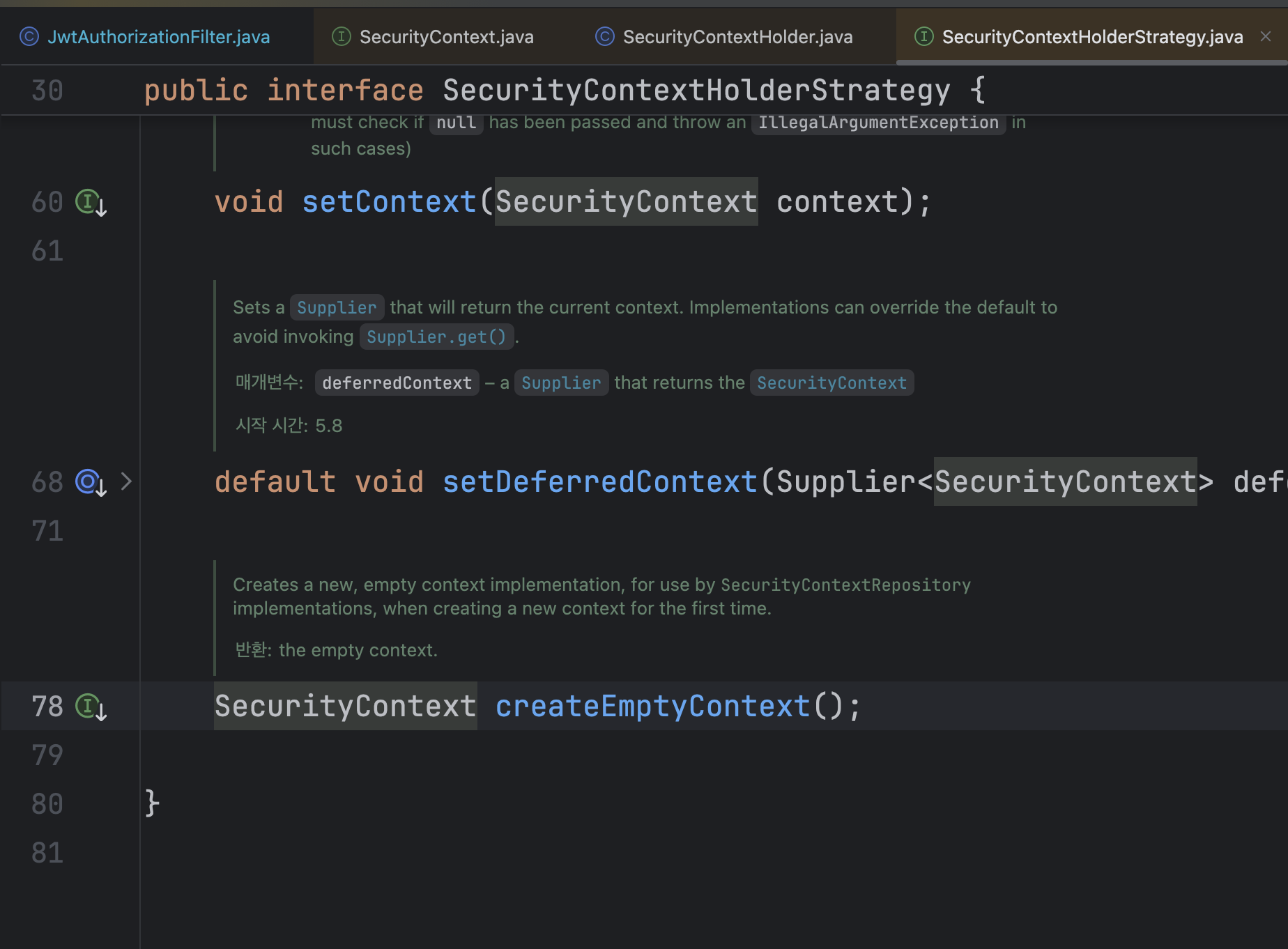 이를 통해 현재 스레드의 보안 컨텍스트에 인증 정보를 저장하고 관리할 수 있다.