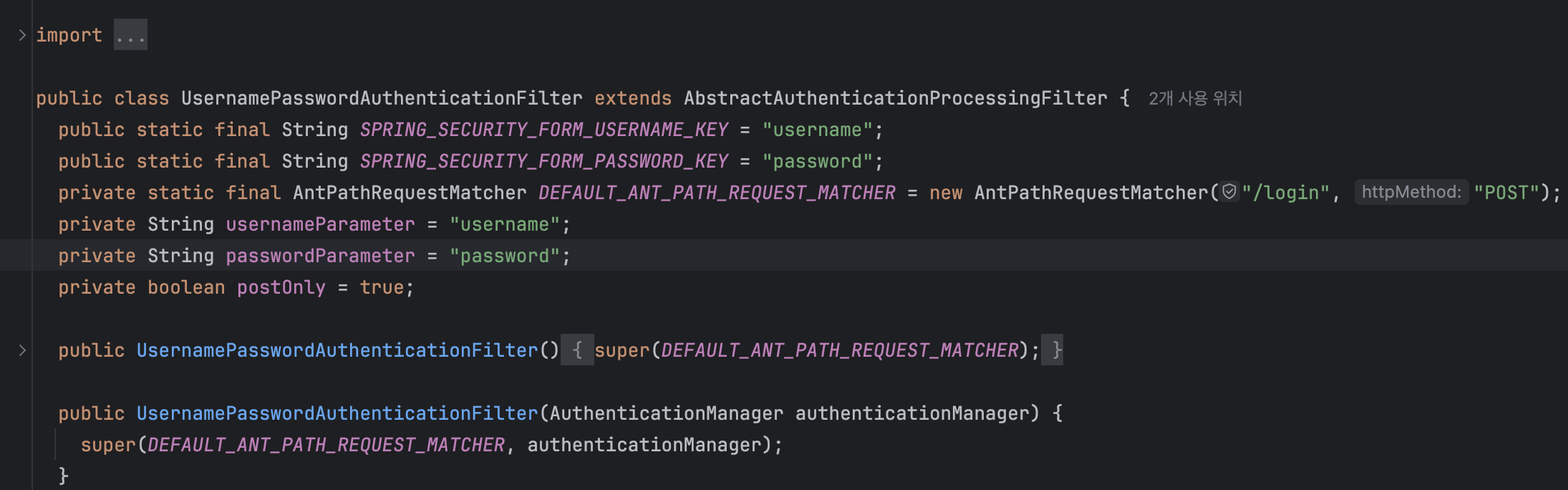 스프링 프레임워크에서 제공하는 UsernamePasswordAuthenticationFilter 내부