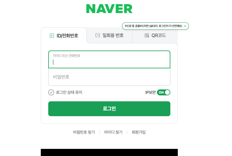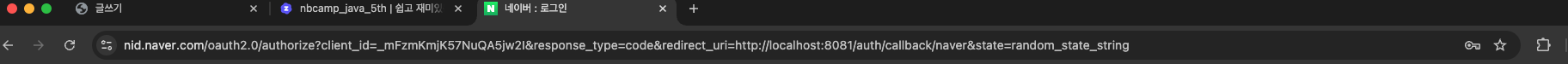 위와 같은 네이버 로그인 화면이 나오는 것을 확인할 수 있고 또한