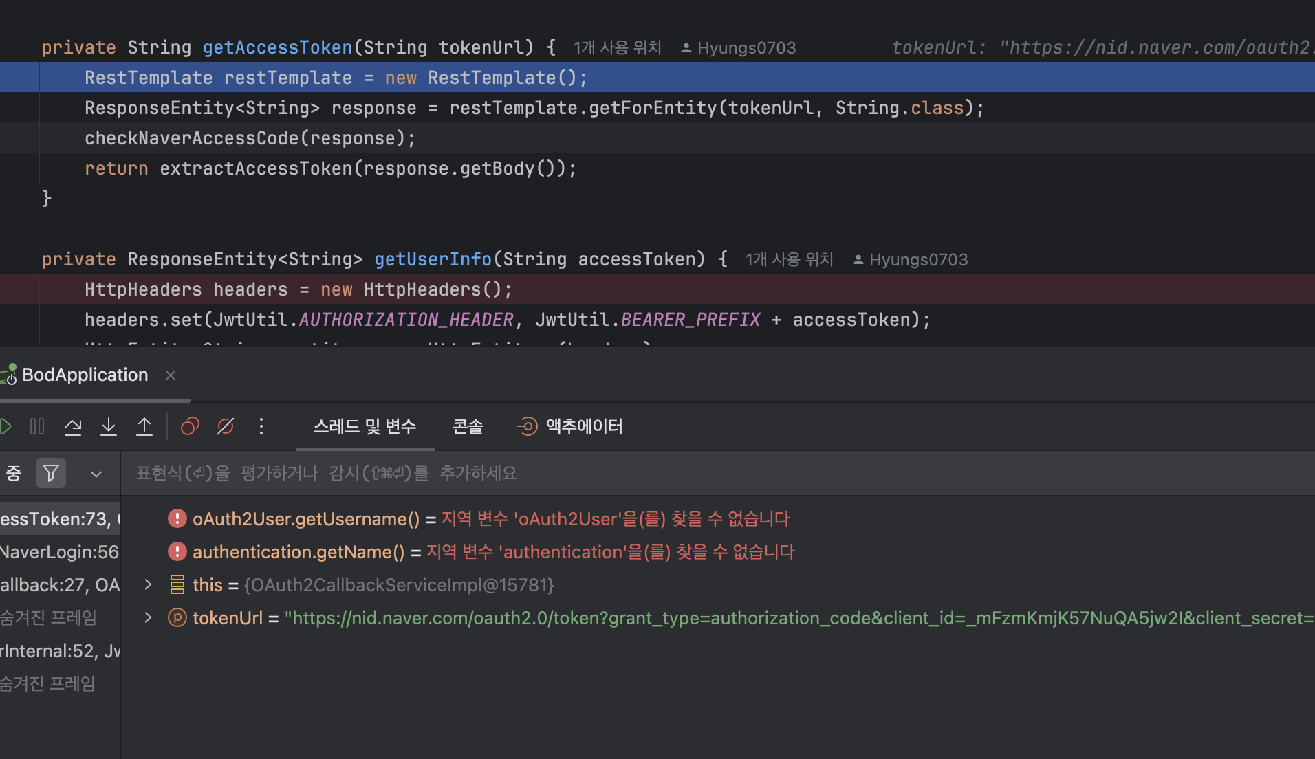 이제 tokenUrl을 RestTemplate으로 재정의