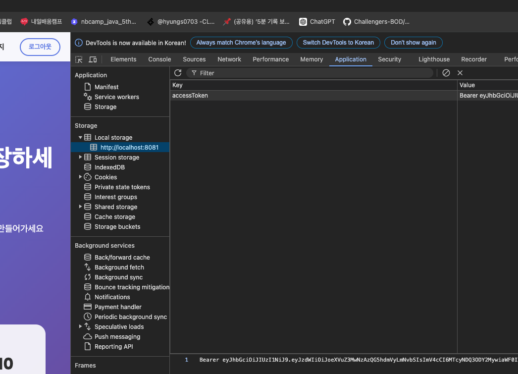 로컬스토리지에 저장하는 것은 당연히 프론트엔드에서 해줘야되는 부분입니다.