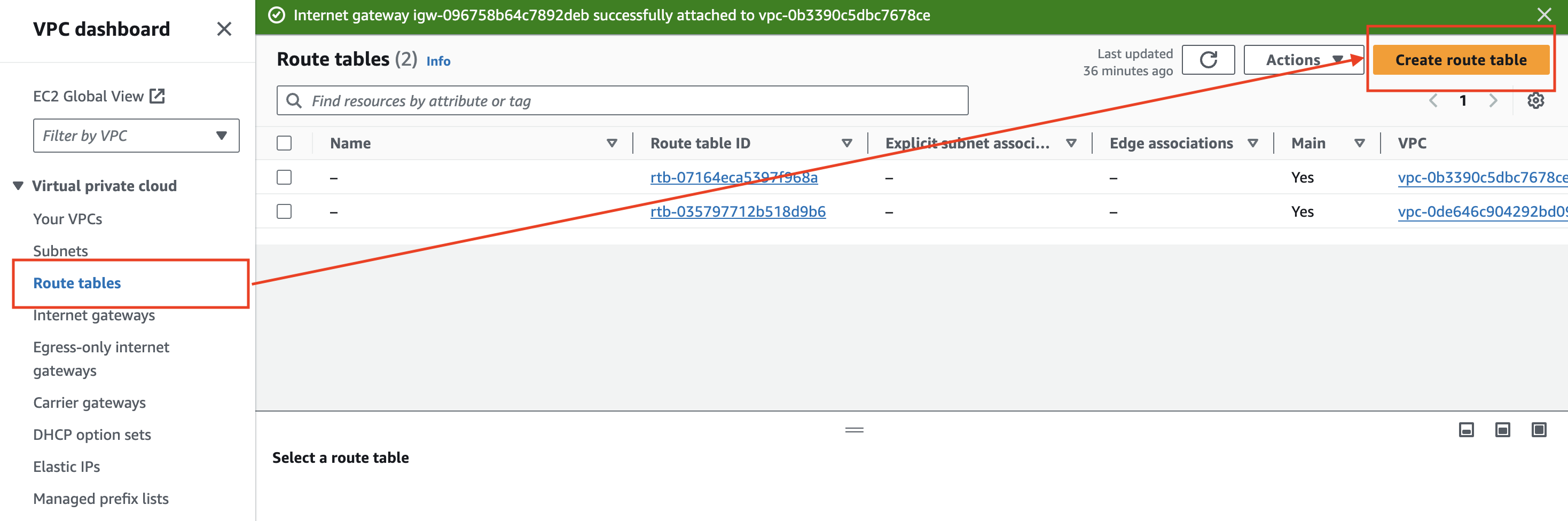 실습 2: Amazon VPC 인프라 구축(과제 4: 퍼블릭 서브넷의 인터넷 트래픽을 인터넷 게이트웨이로 라우팅) 본문
