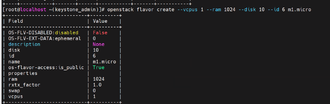 openstack flavor create --vcpus 1 --ram 1024 --disk 10 --id 6 m1.micro