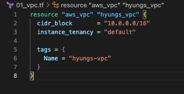 먼저 VPC와 서브넷을 정의합니다. 각 서브넷은 다른 가용 영역(AZ)에 배치하여 고가용성을 보장합니다.