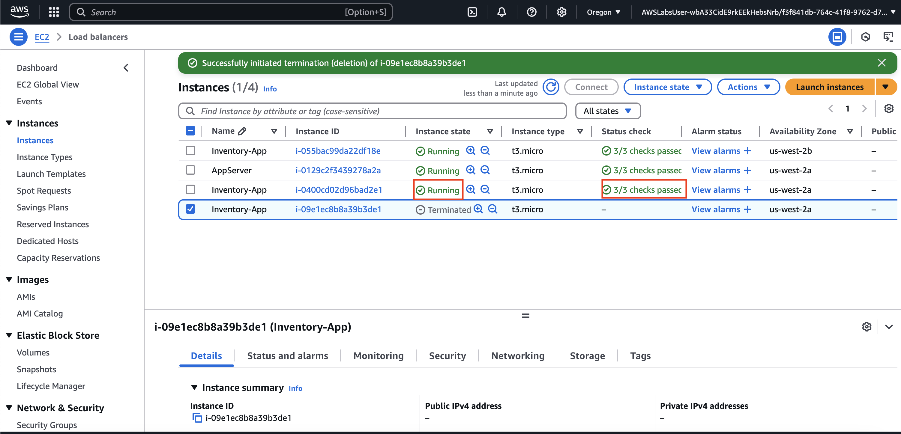 실습 4: Amazon VPC에서 고가용성 구성(과제 5: 애플리케이션 티어의 고가용성 테스트) 본문