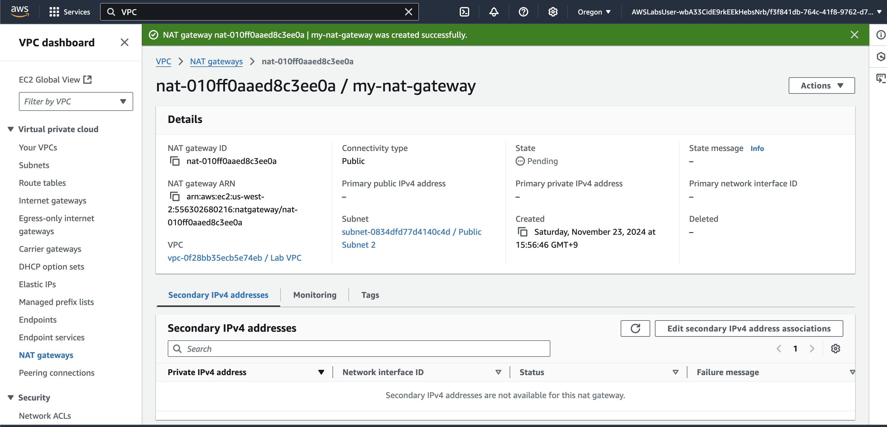 과제 7.1: 두 번째 NAT 게이트웨이 생성