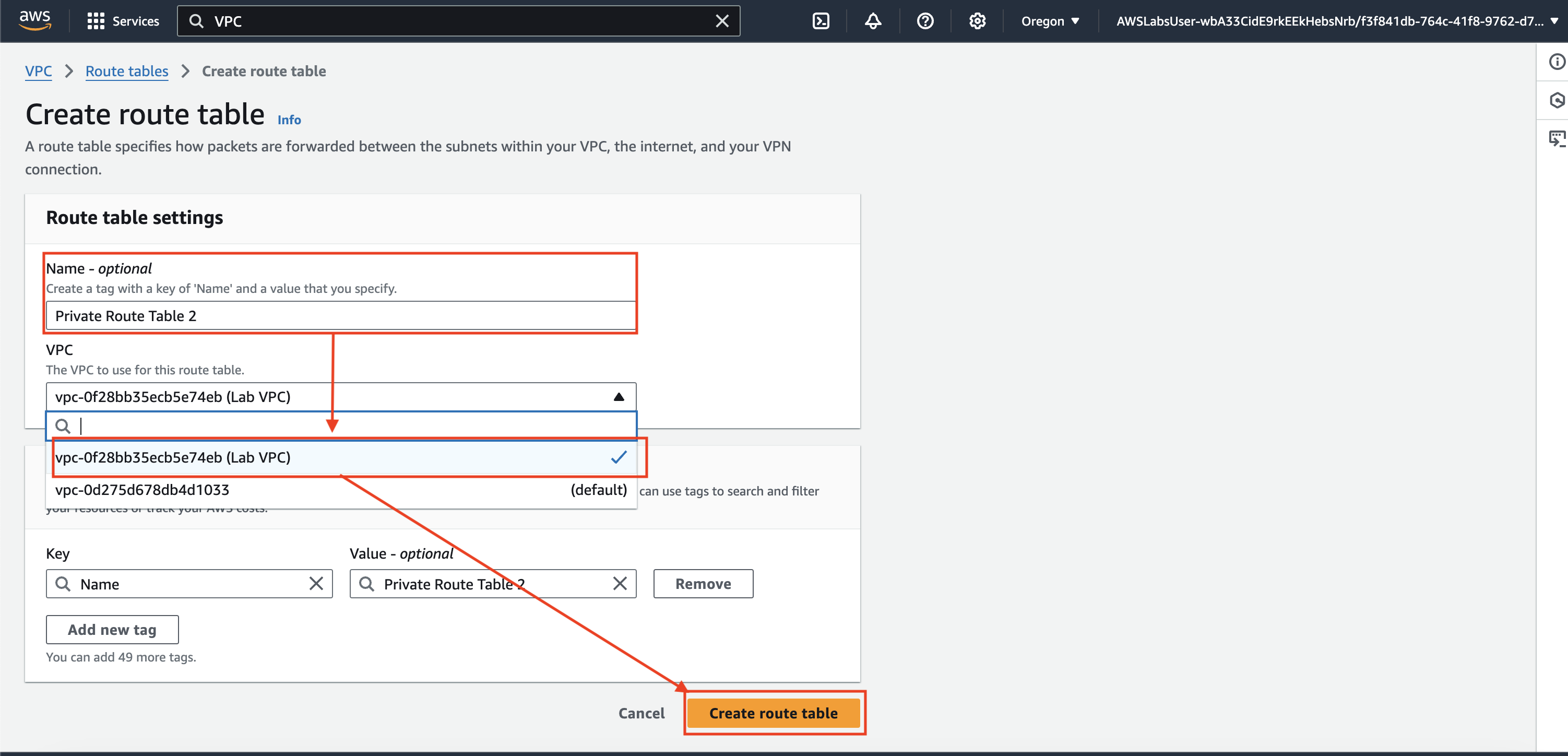 과제 7.2: 새 라우팅 테이블 생성 및 구성