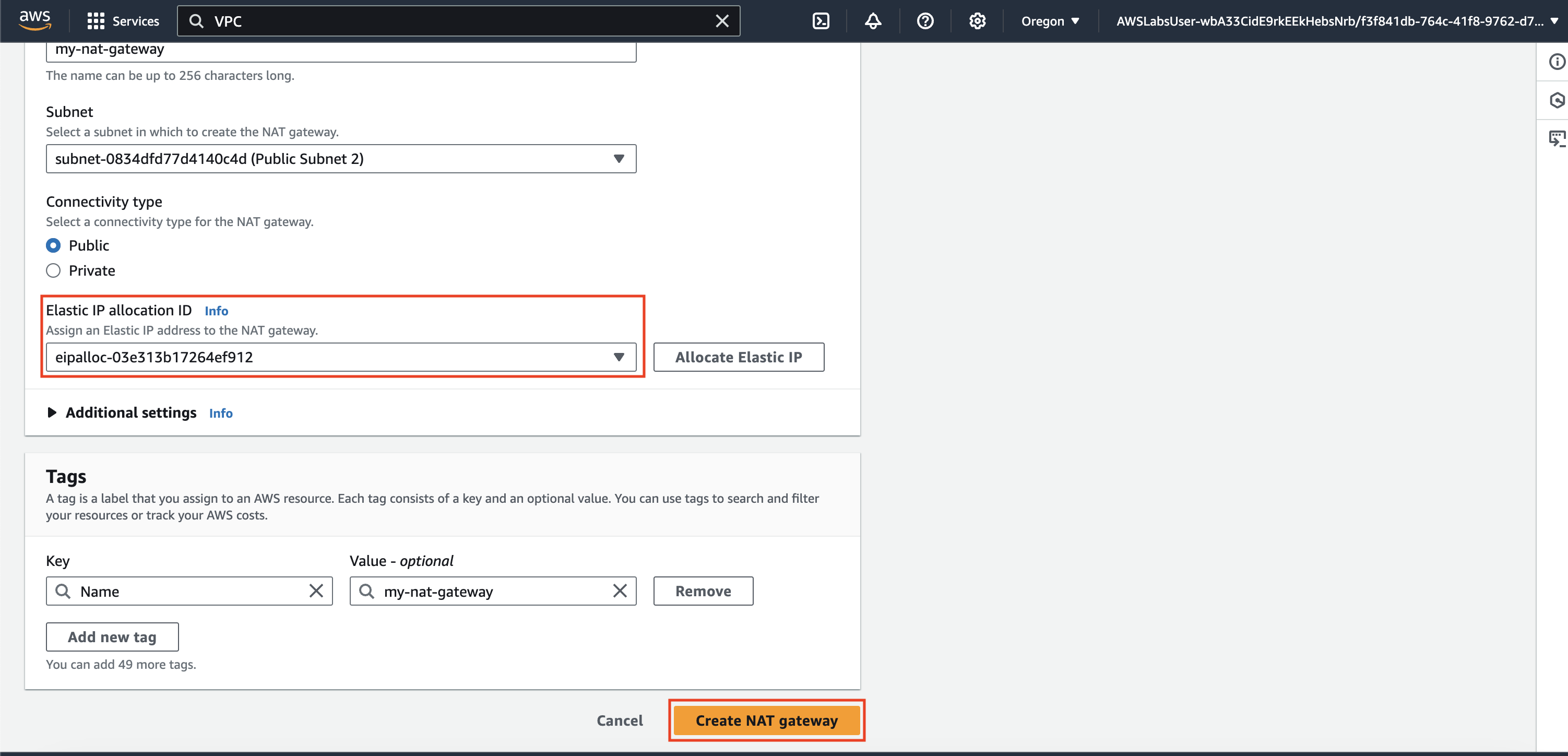 실습 4: Amazon VPC에서 고가용성 구성(과제 7: NAT 게이트웨이가 고가용성을 제공하도록 설정) 본문