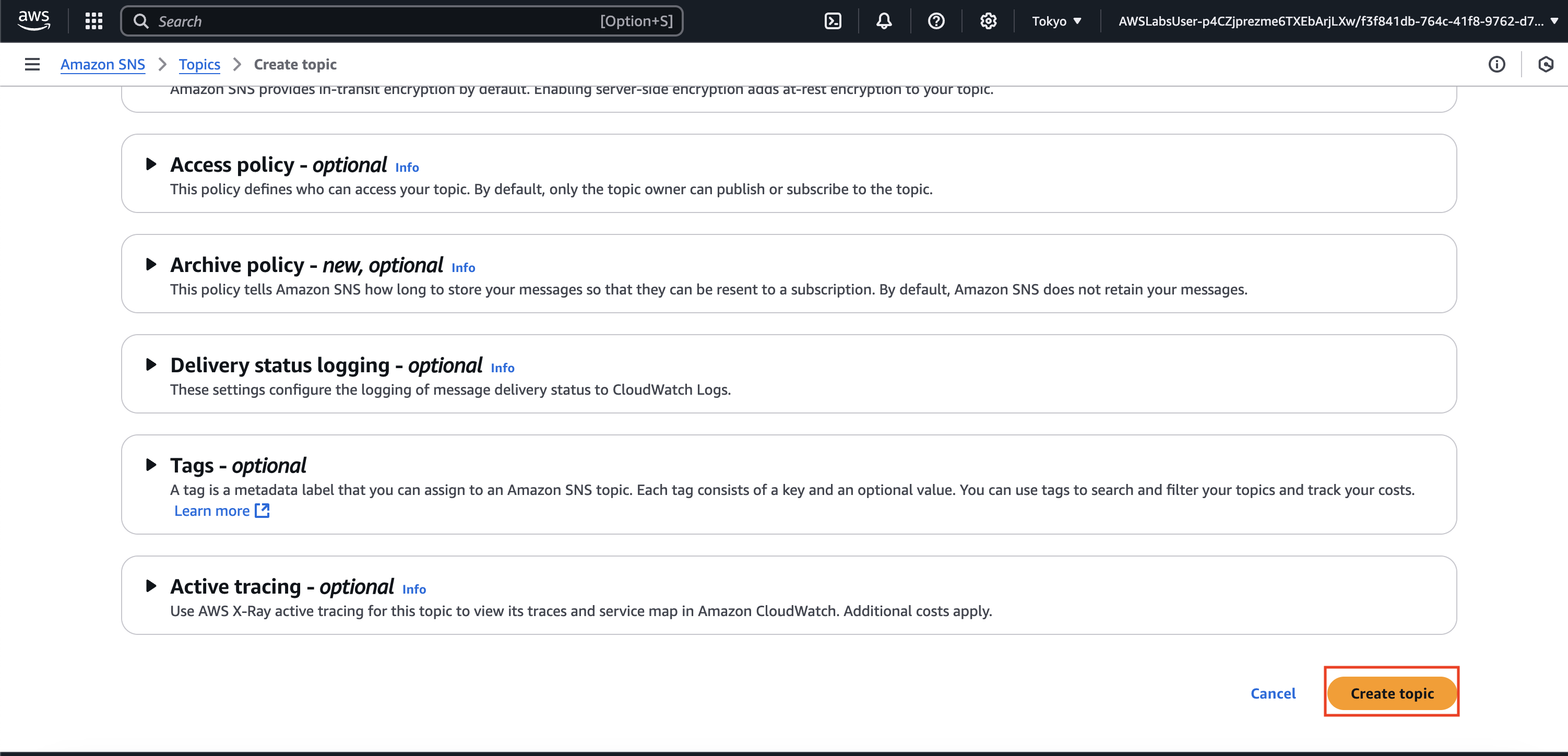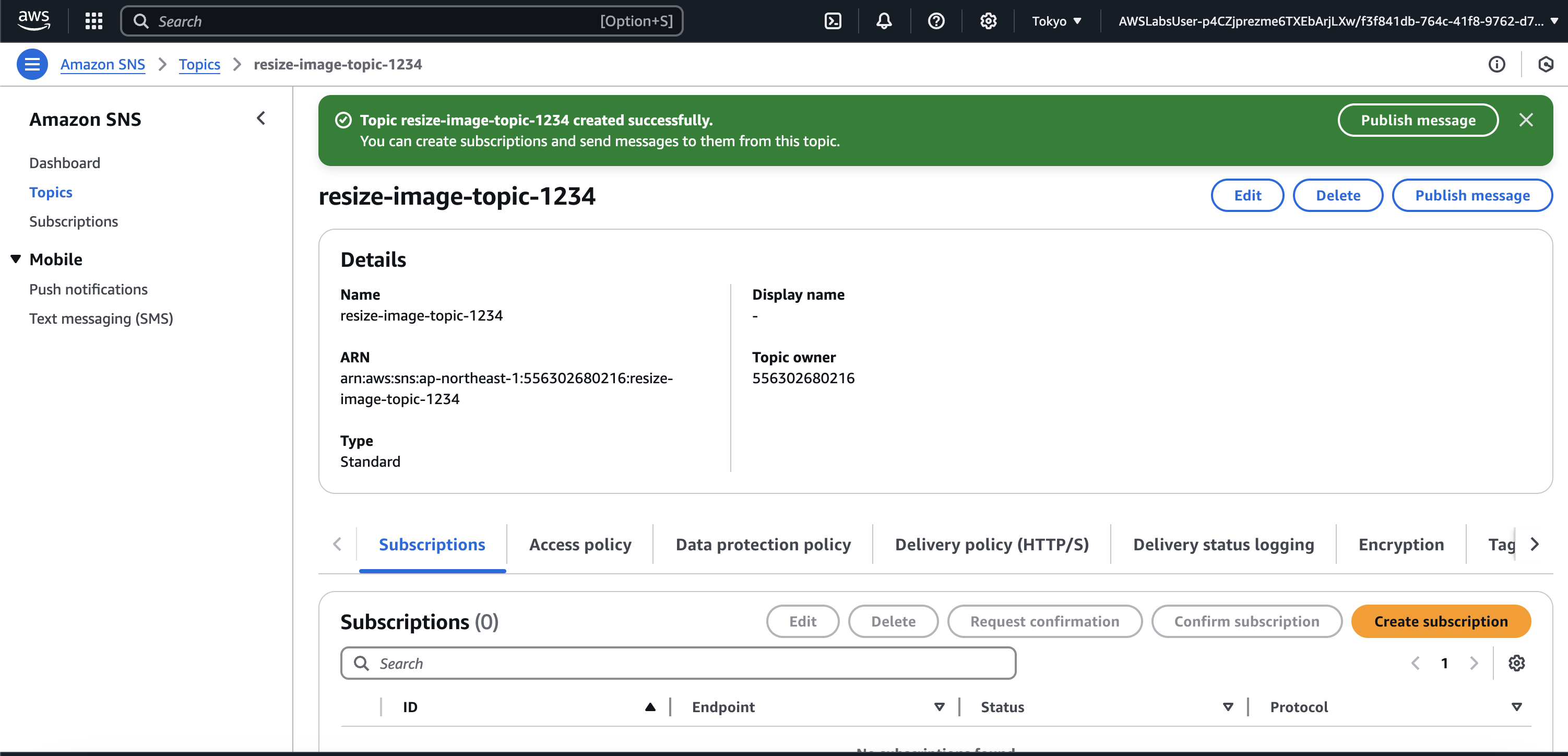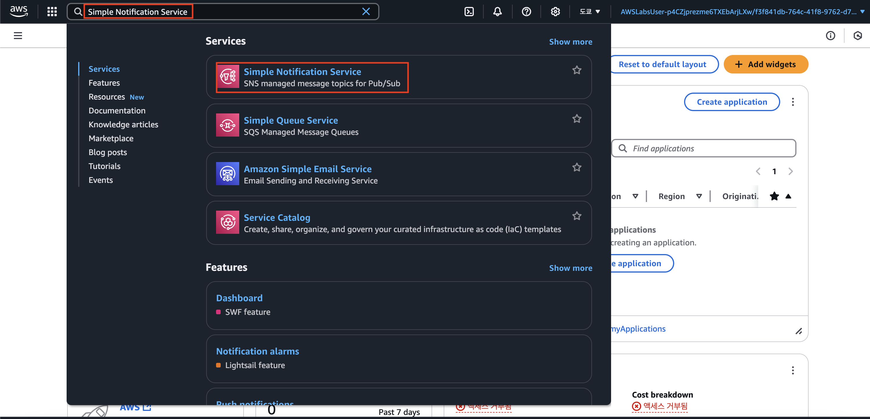 실습 5: 서버리스 아키텍처 구축(과제 1: 표준 Amazon SNS 주제 생성) 본문
