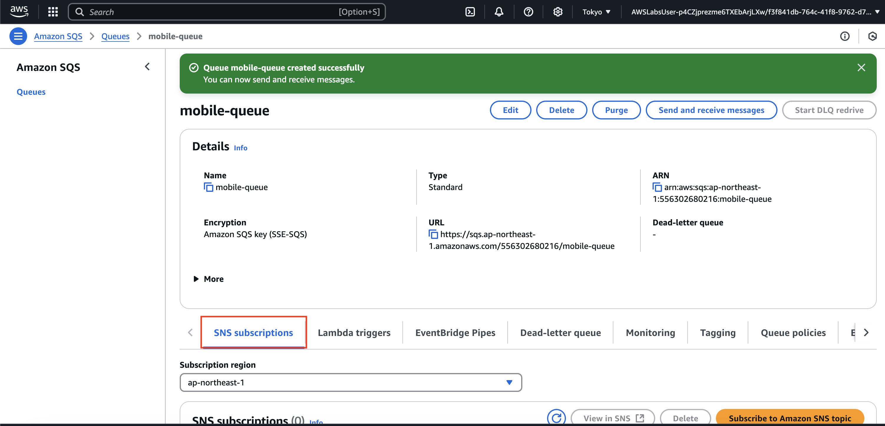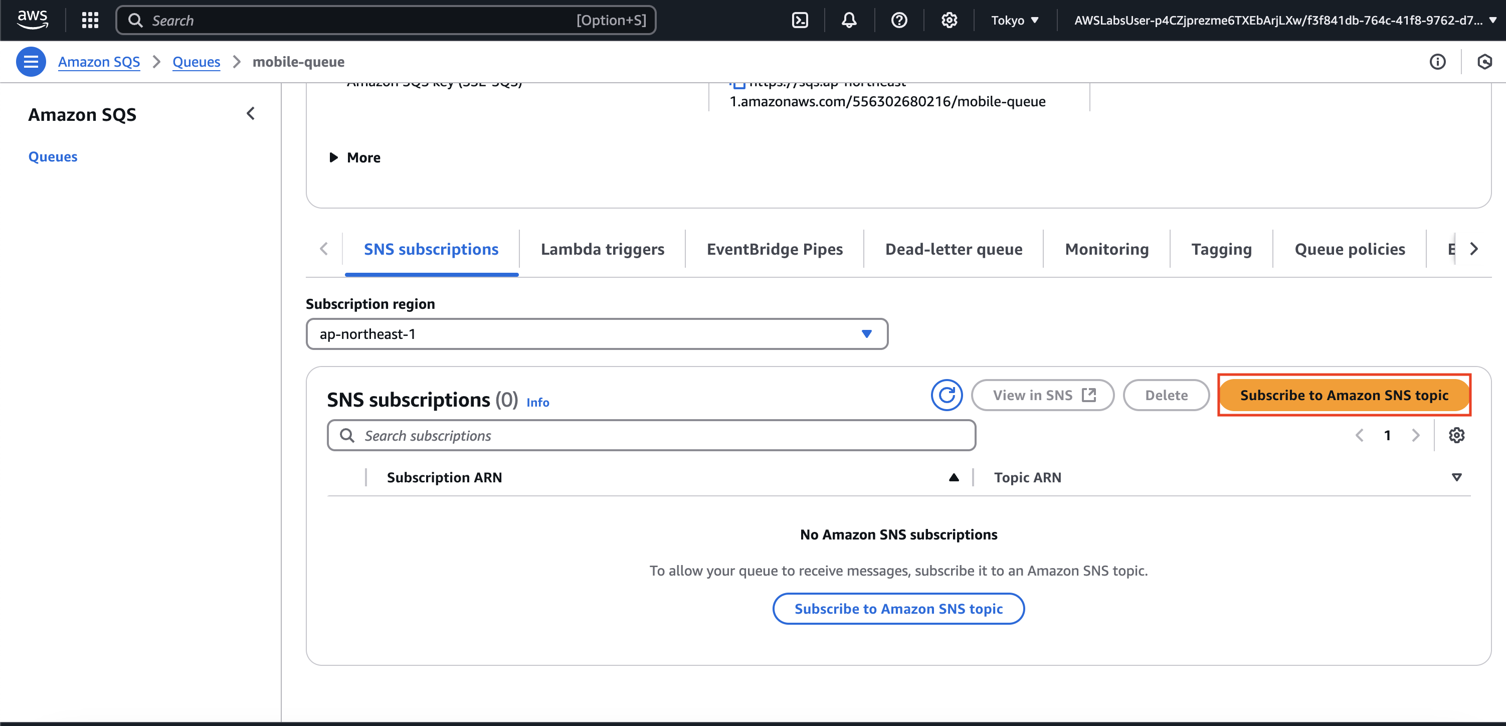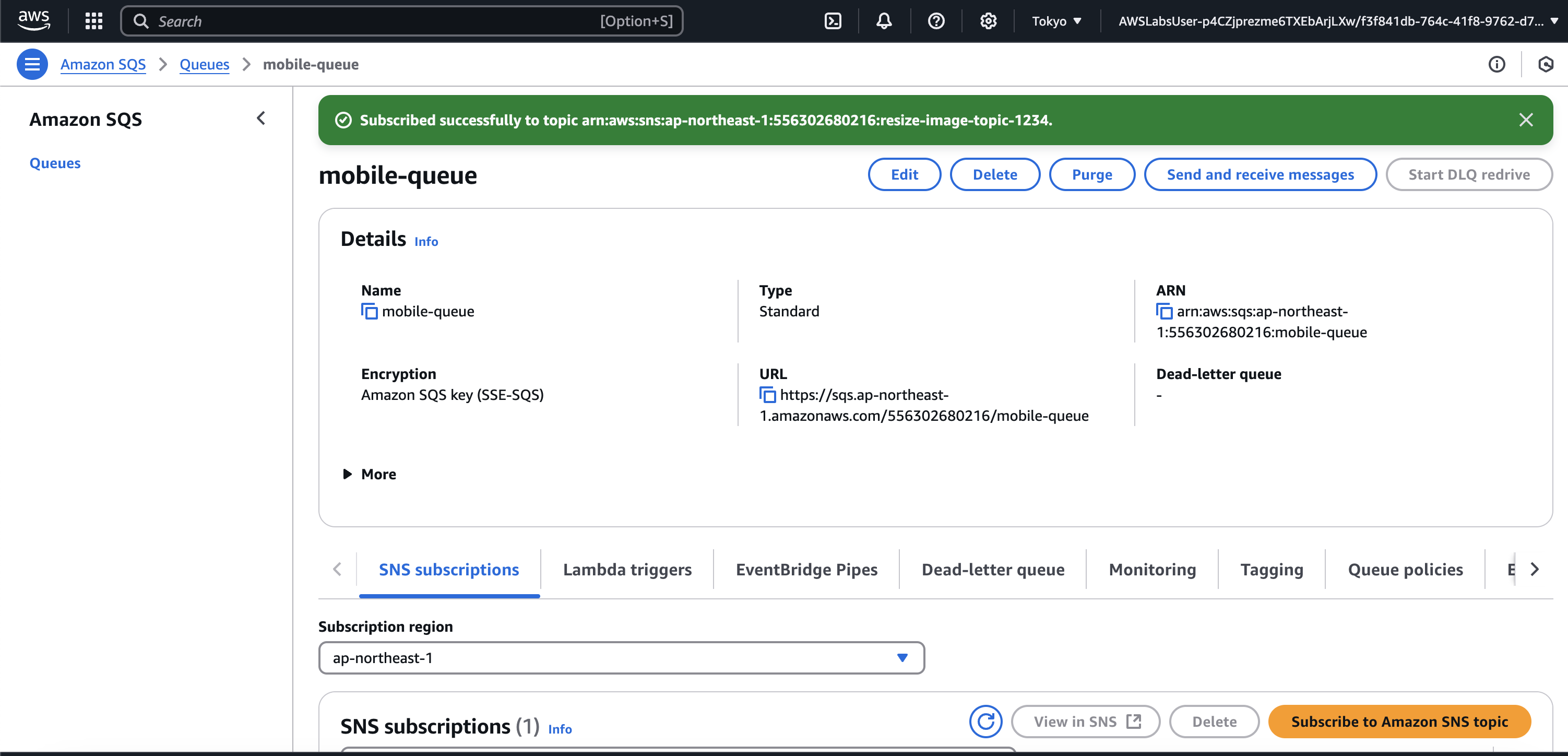 과제 2.2: 모바일 이미지용 Amazon SQS 대기열 생성