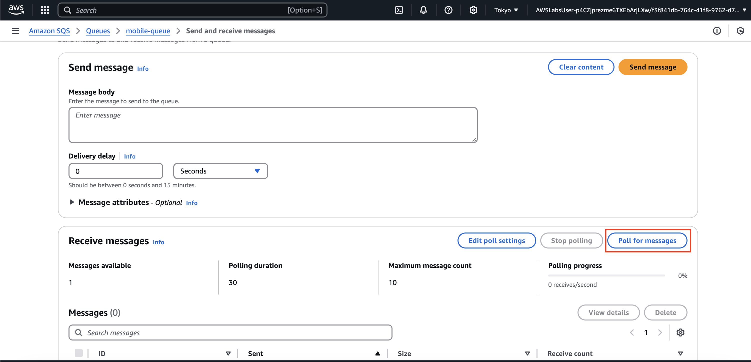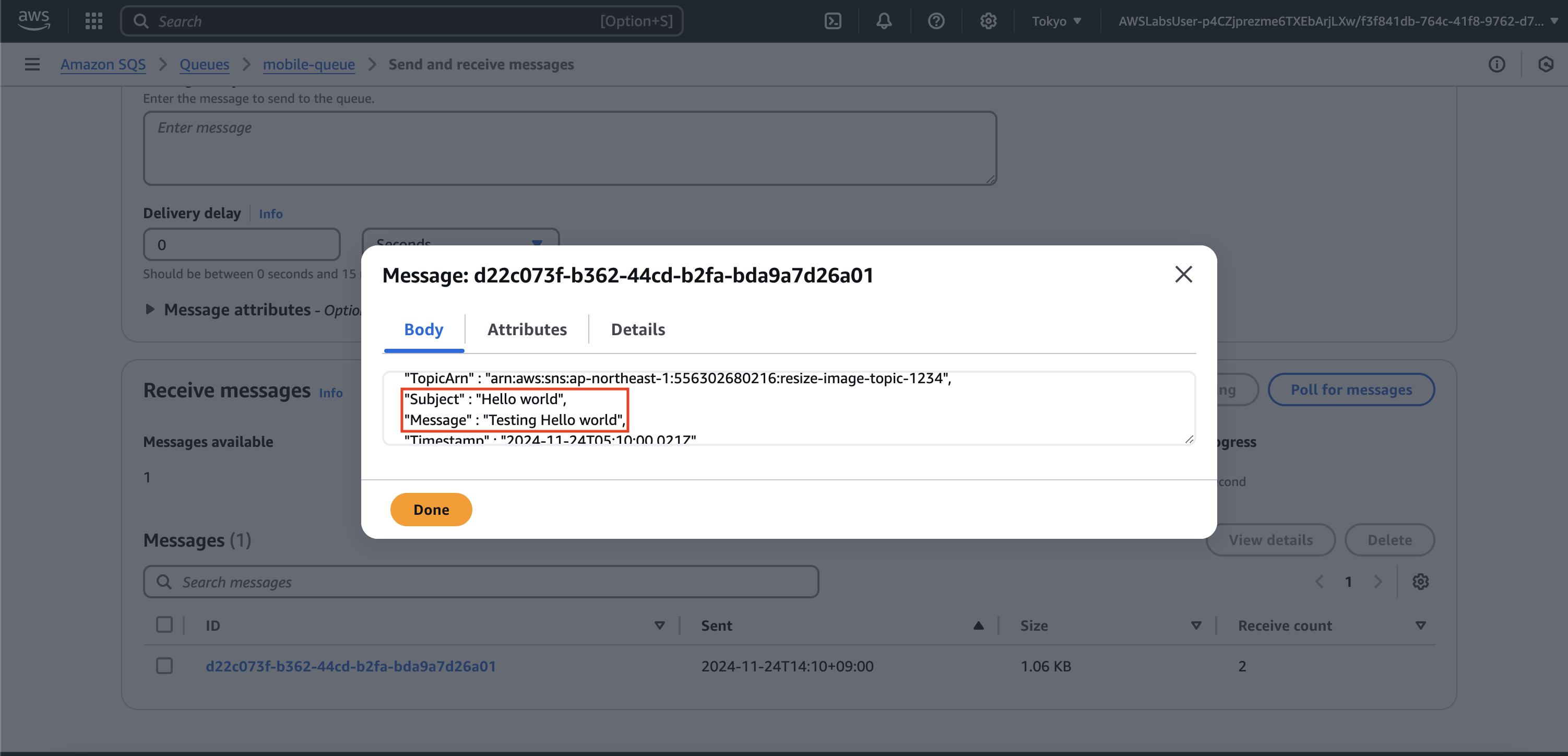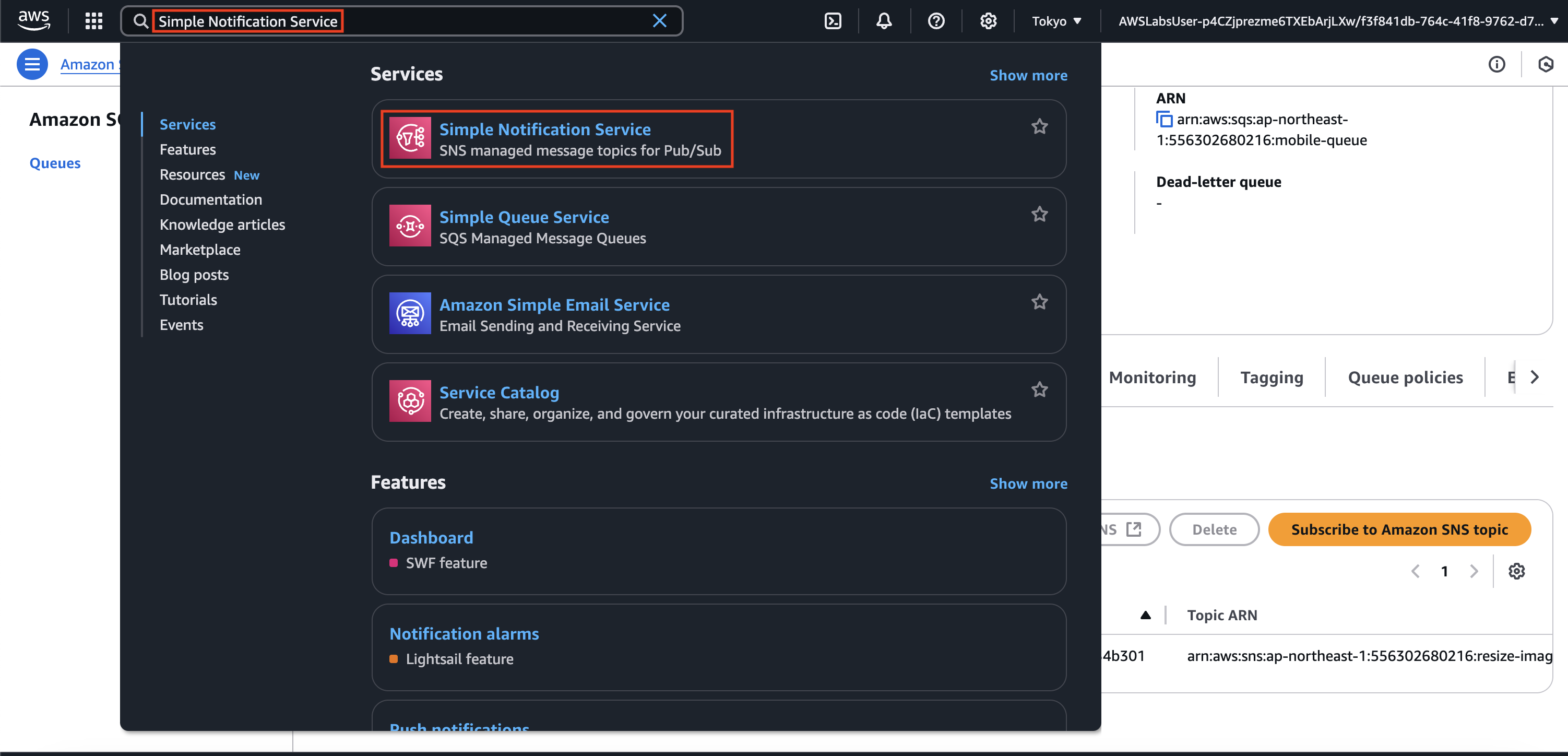과제 2.2: 모바일 이미지용 Amazon SQS 대기열 생성