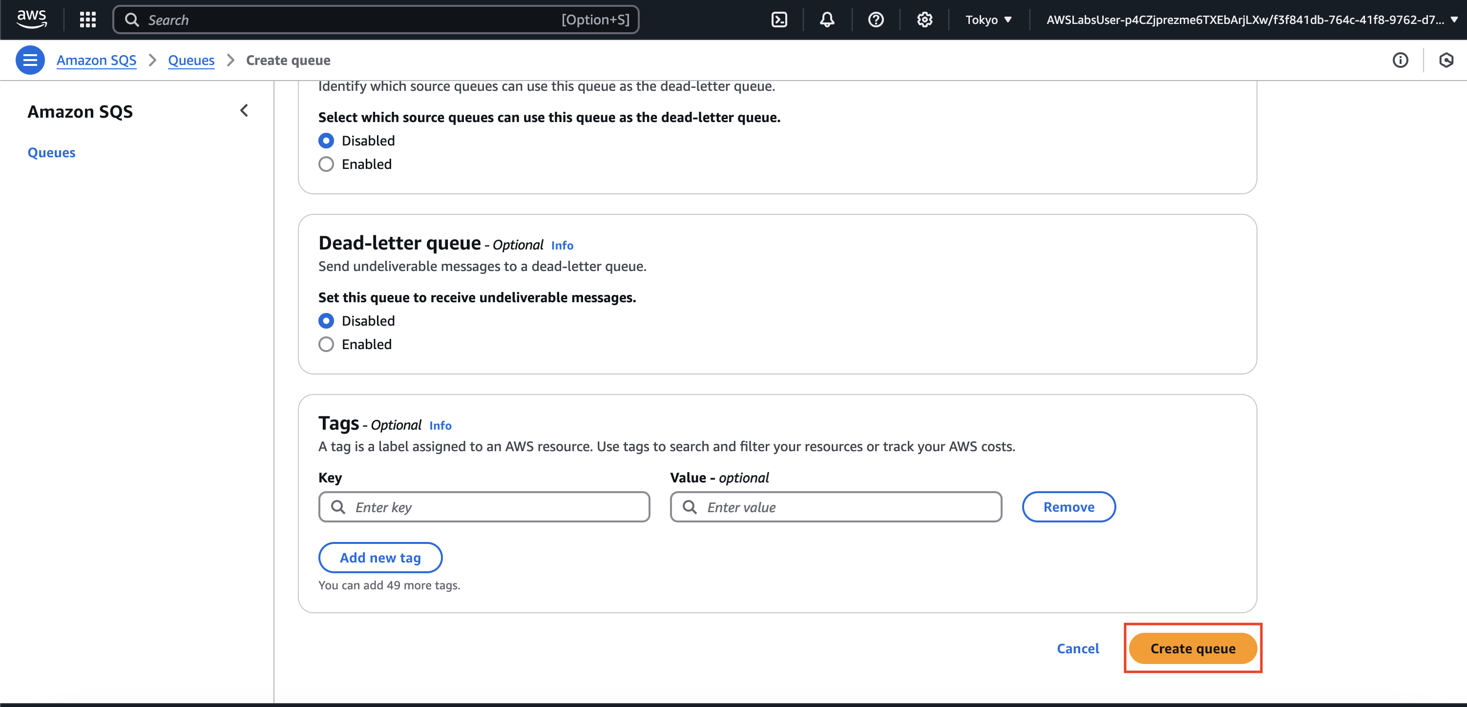 실습 5: 서버리스 아키텍처 구축(과제 2: Amazon SQS 대기열 2개 생성) 본문