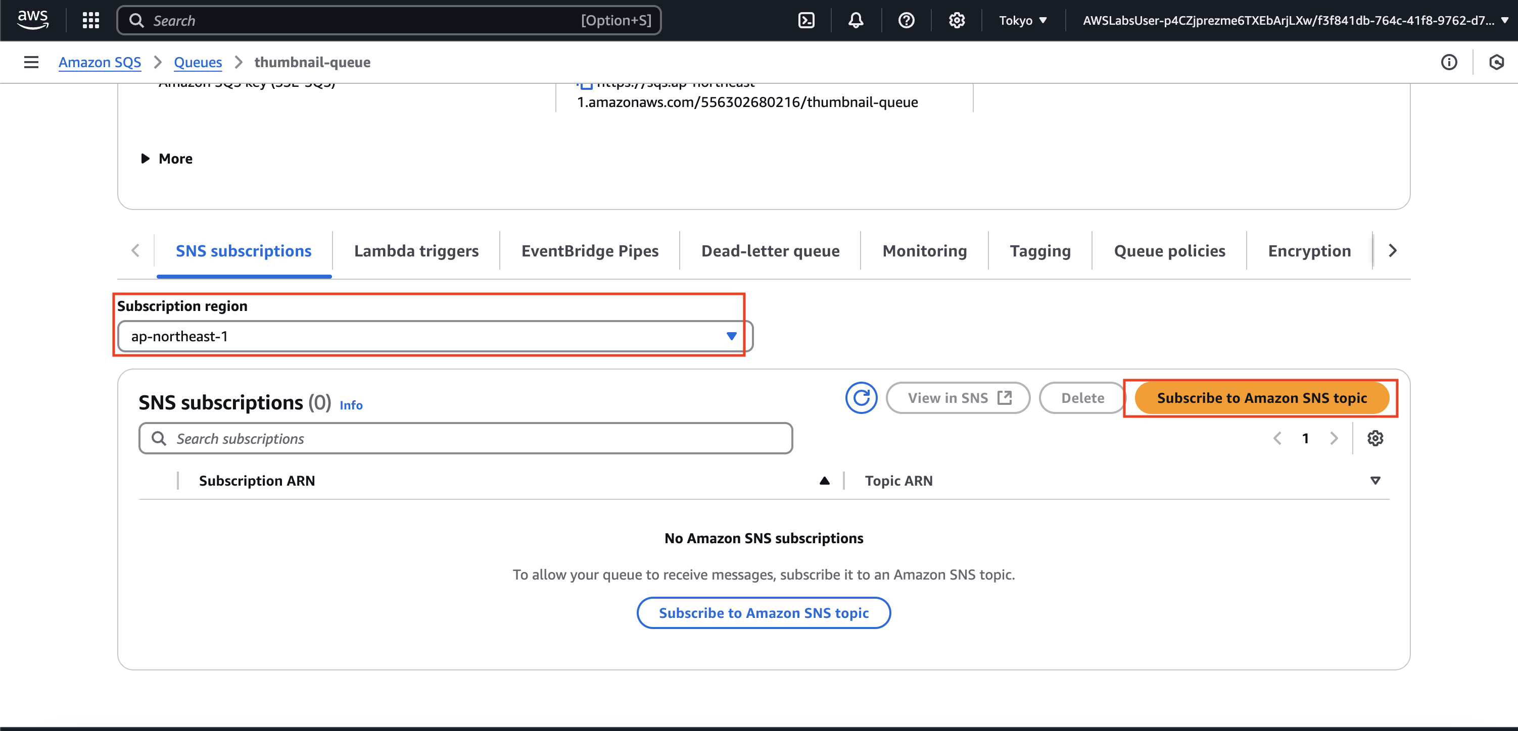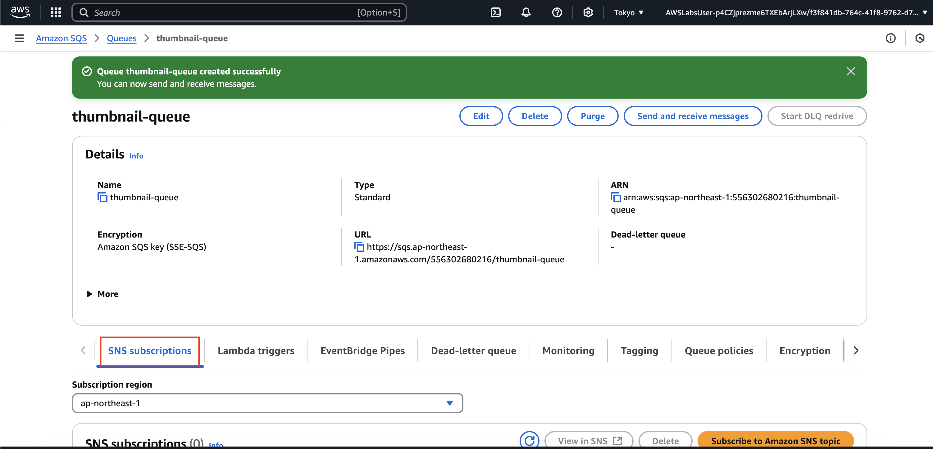 과제 2.1: 썸네일 이미지용 Amazon SQS 대기열 생성
