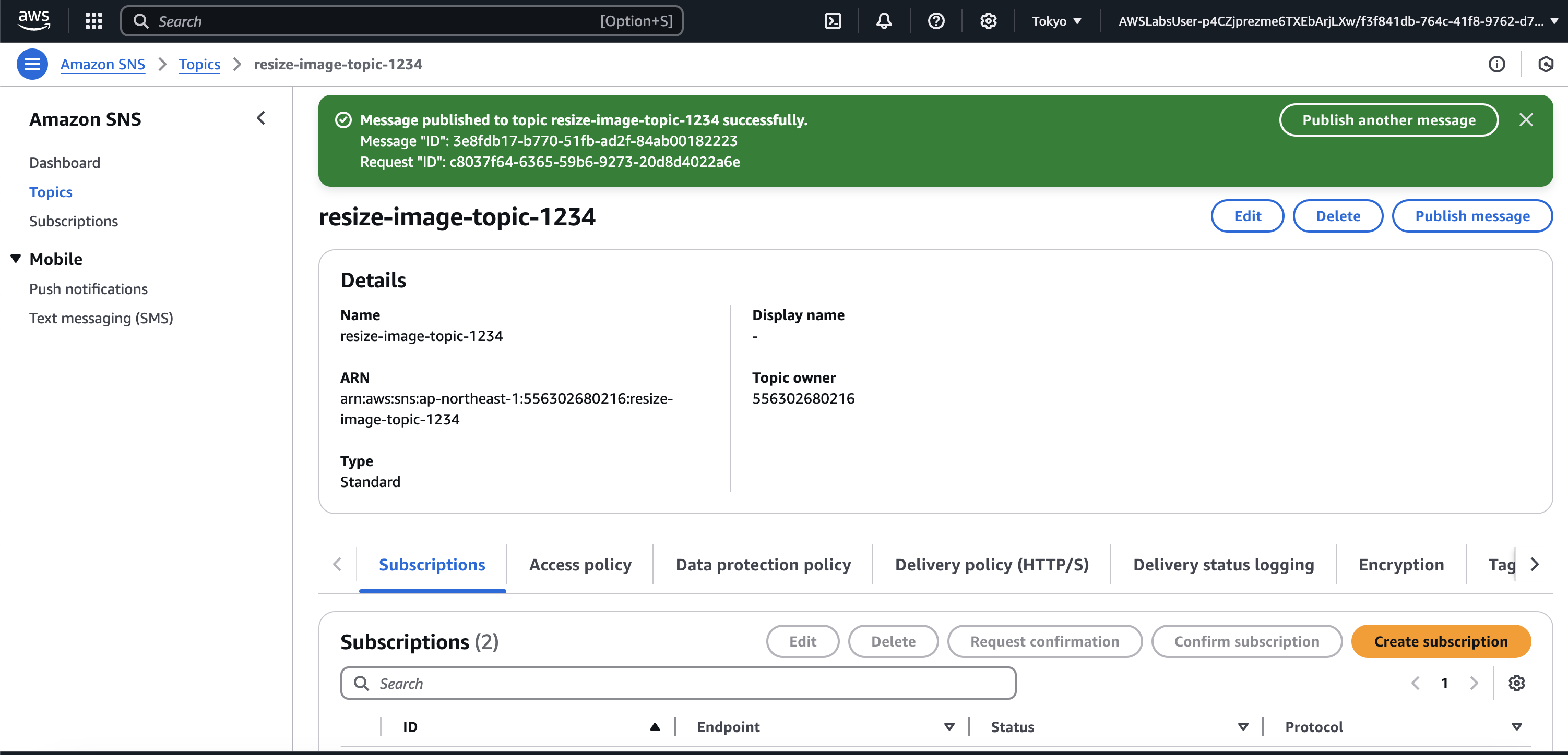 과제 2.3: AWS SNS 구독 확인