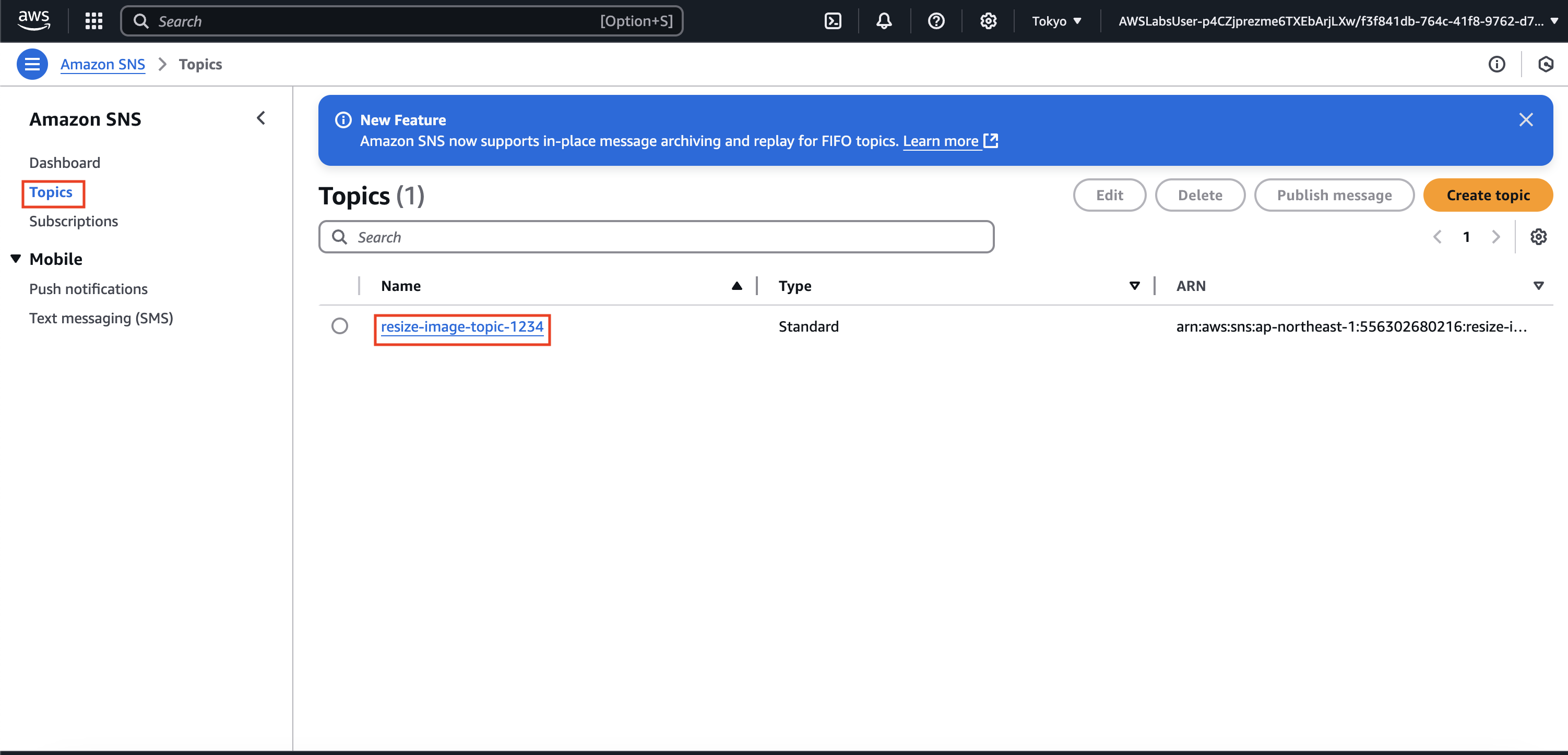실습 5: 서버리스 아키텍처 구축(과제 1: 표준 Amazon SNS 주제 생성)