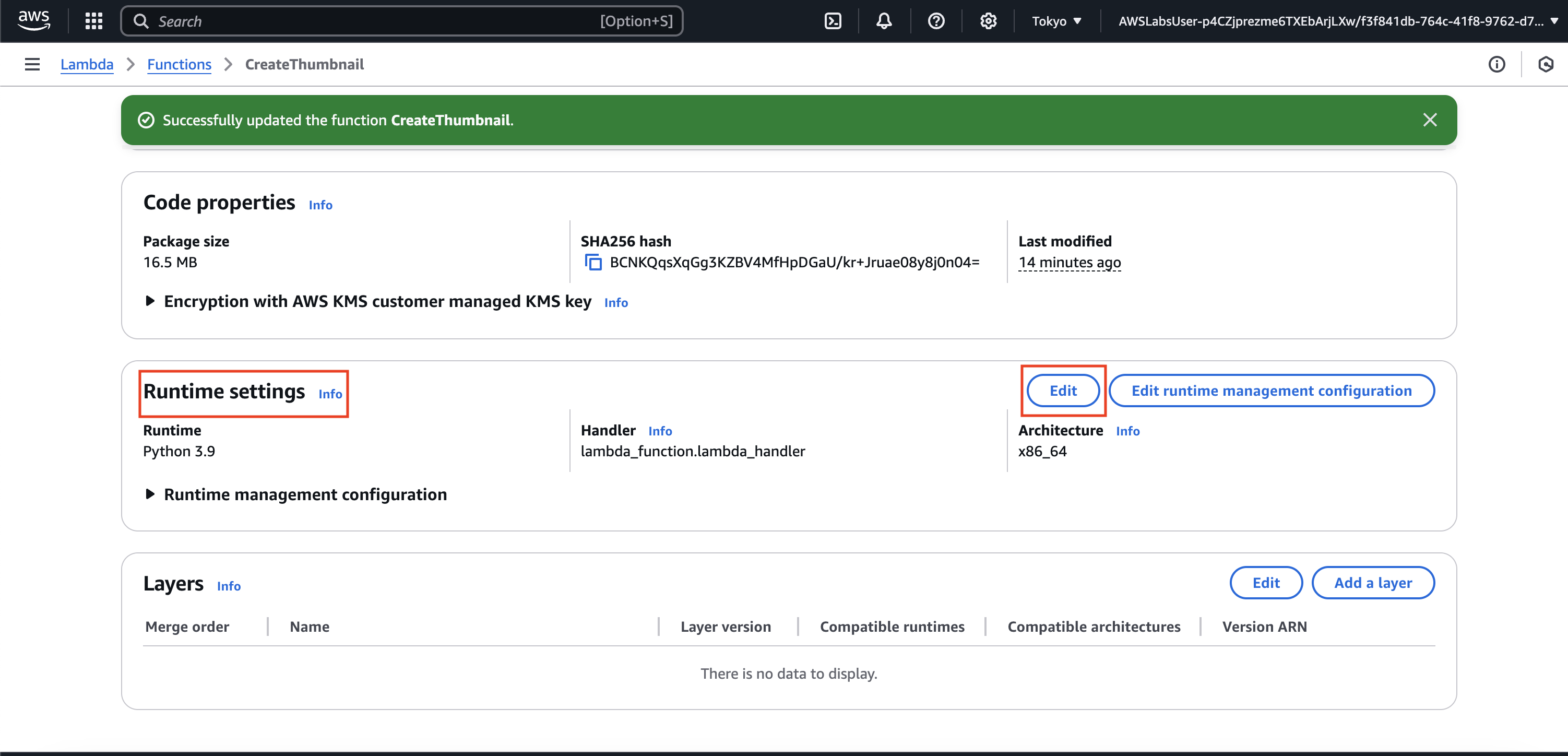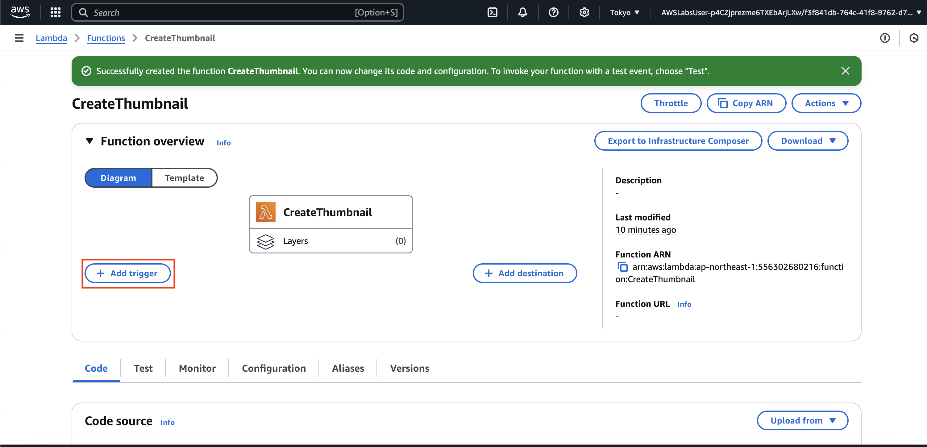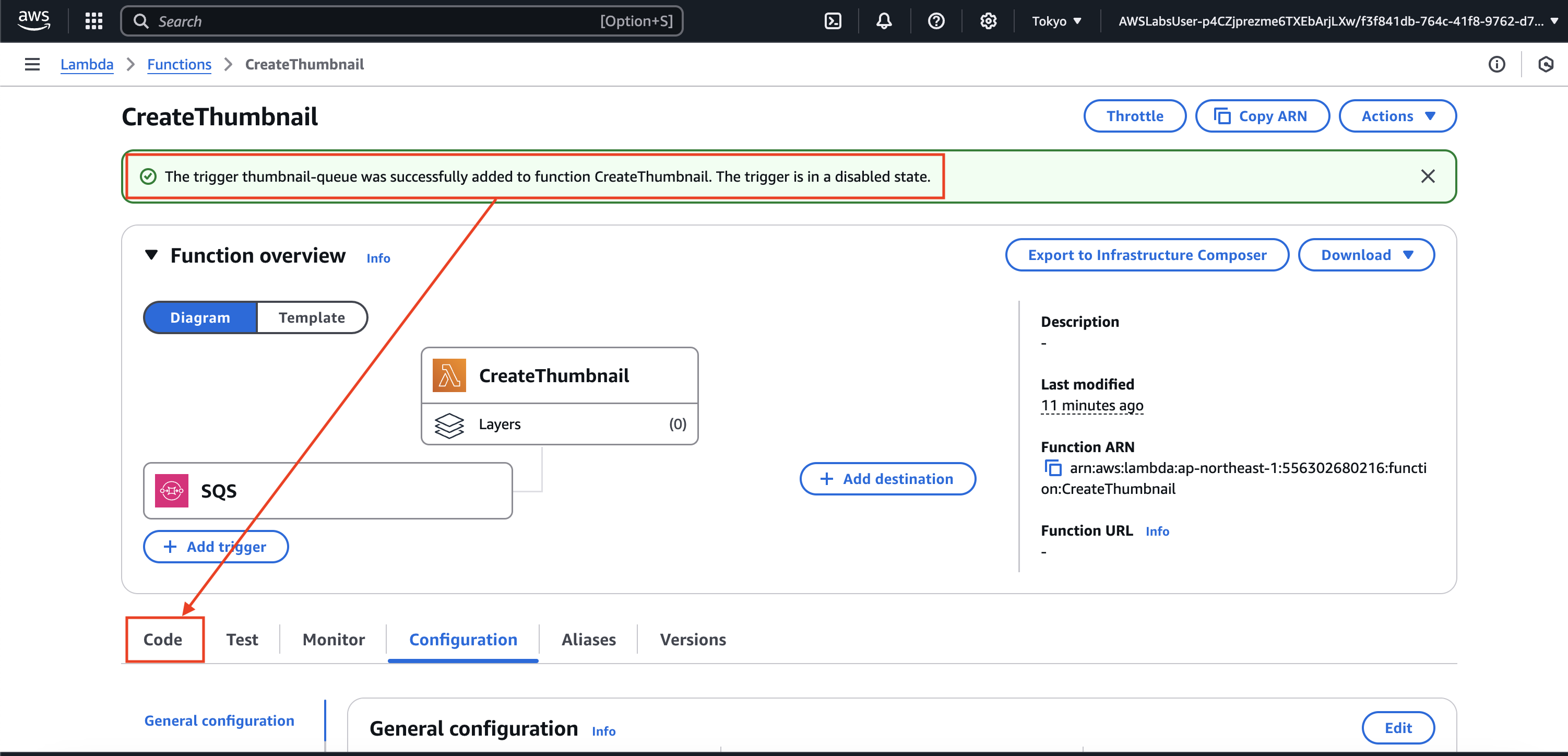 과제 4.2: SQS 트리거를 추가하고 Python 배포 패키지를 업로드하도록 CreateThumbnail Lambda 함수 구성