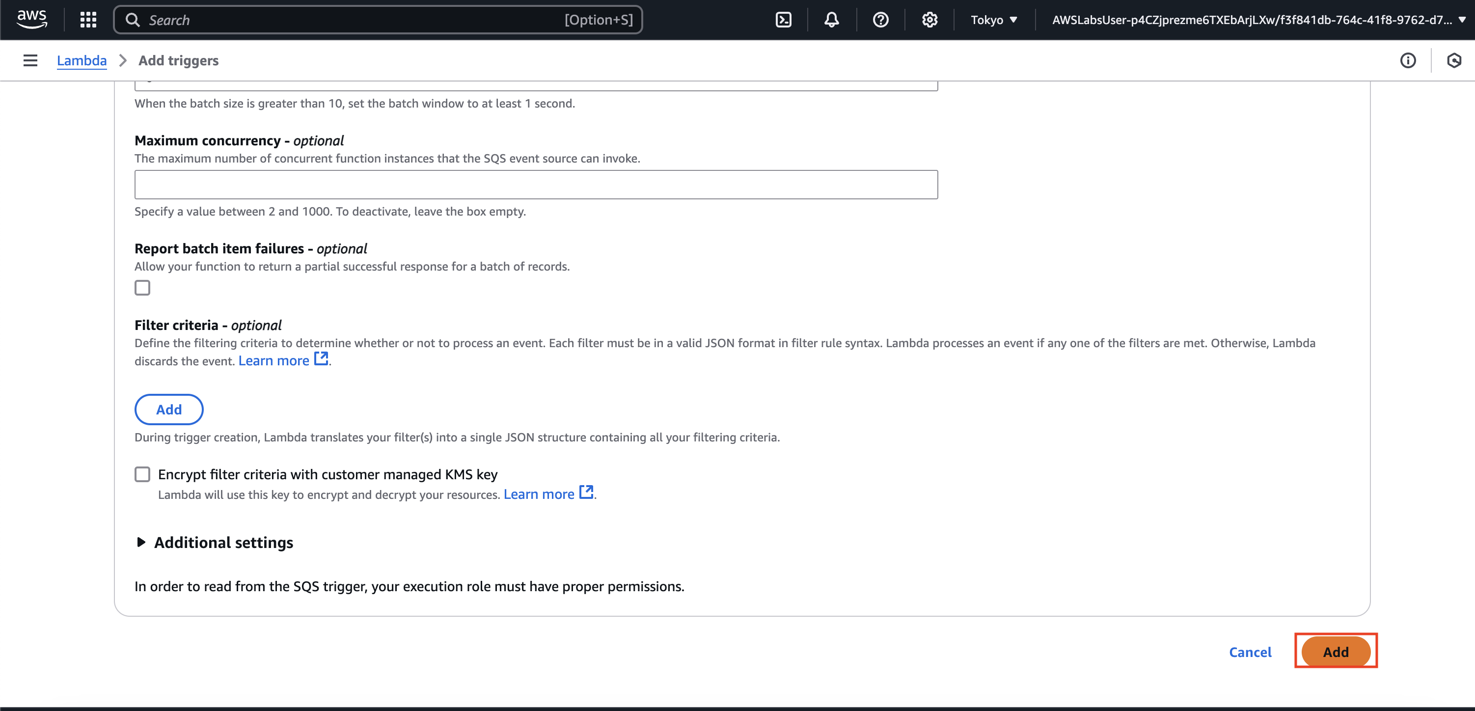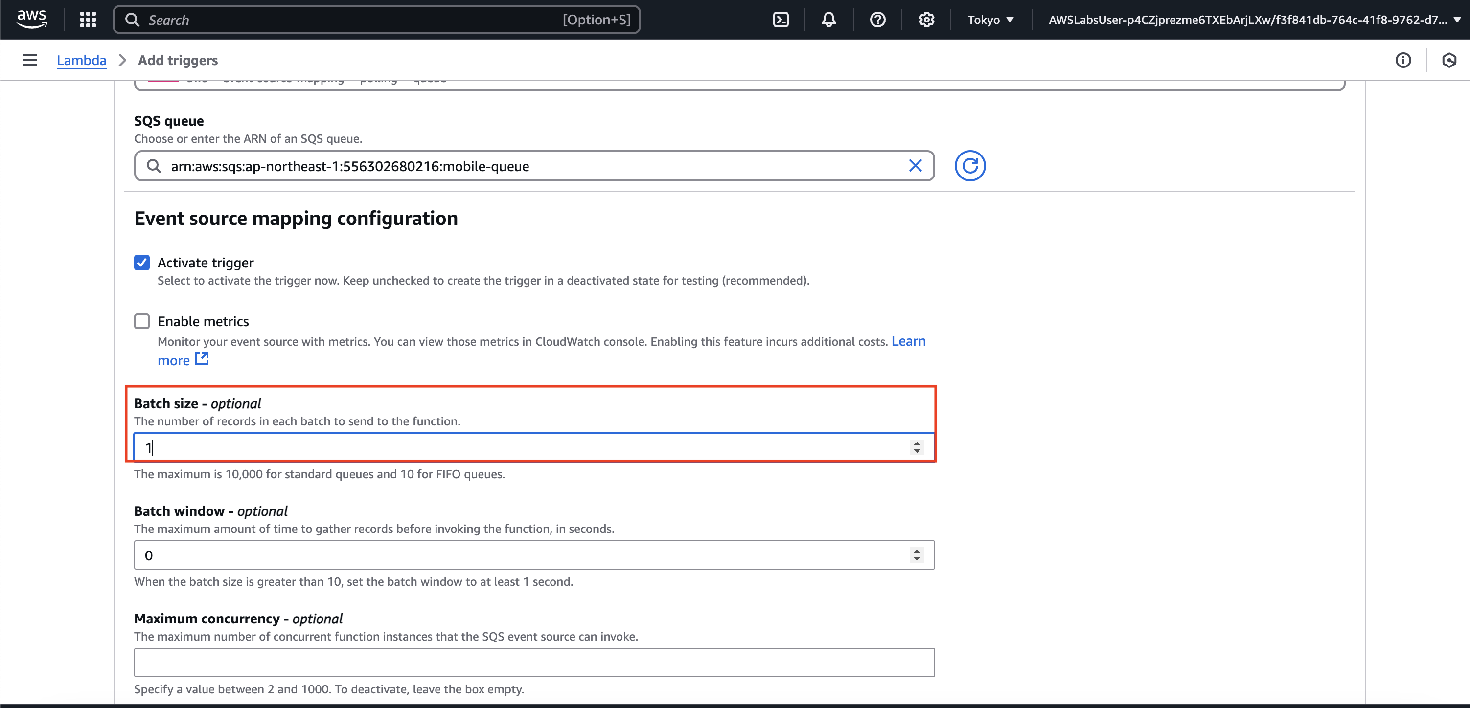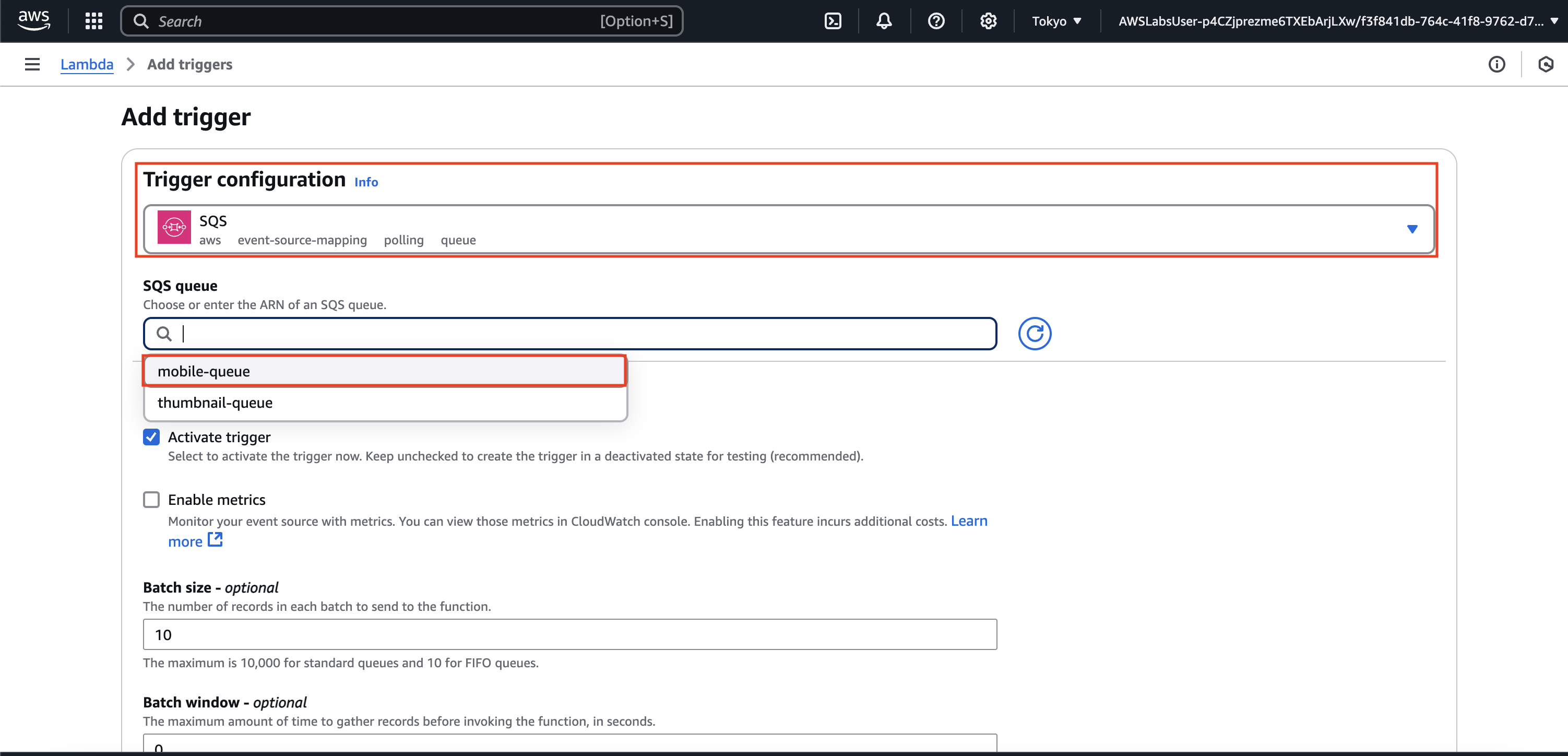 과제 4.4: SQS 트리거를 추가하고 Python 배포 패키지를 업로드하도록 CreateMobileImage Lambda 함수 구성