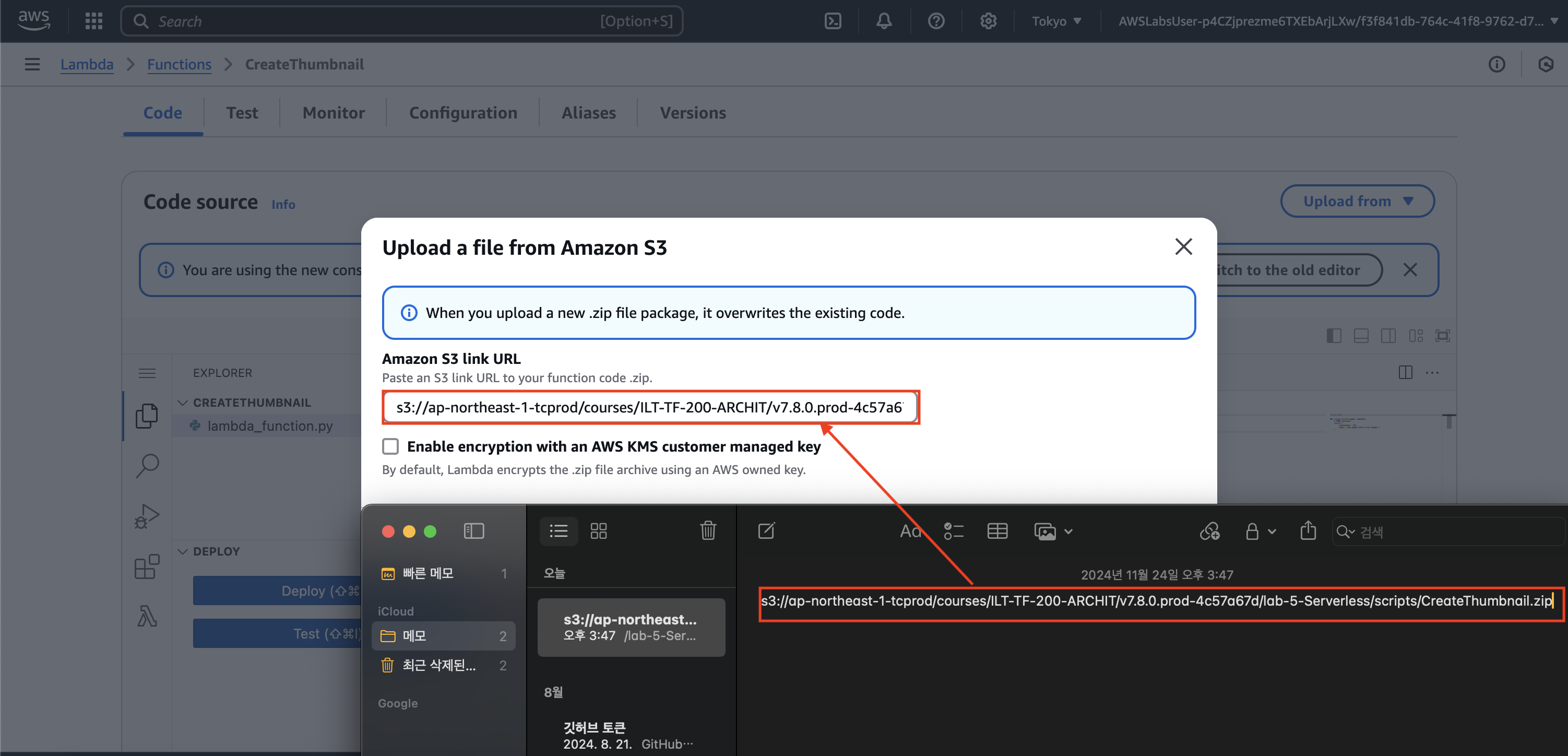 실습 5: 서버리스 아키텍처 구축(과제 3: Amazon S3 이벤트 알림 생성)