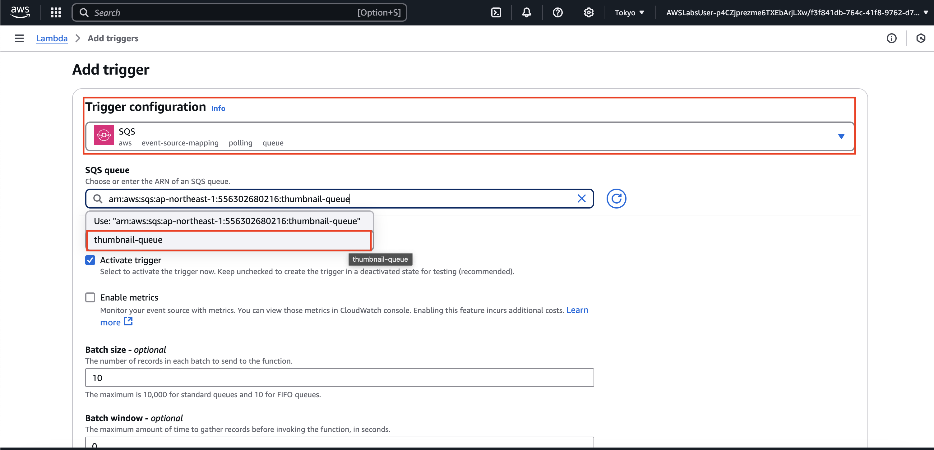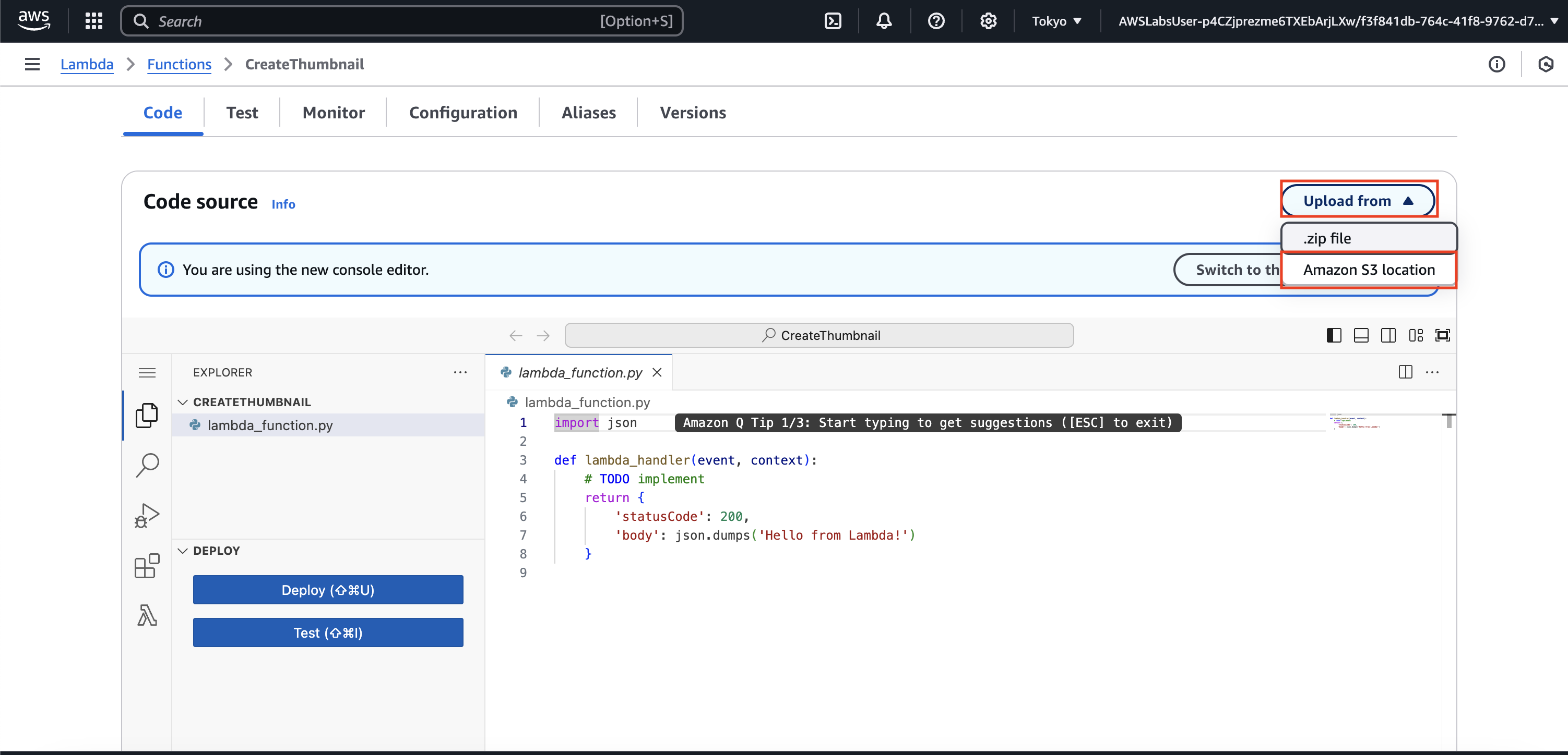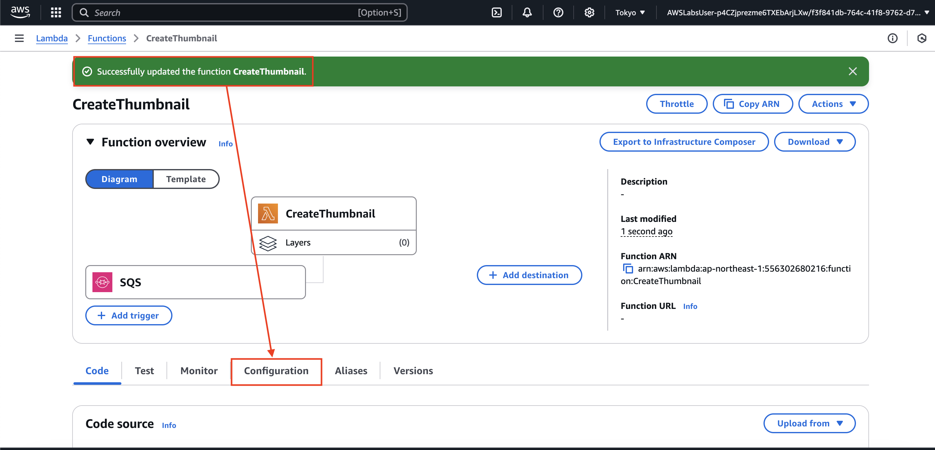 과제 4.2: SQS 트리거를 추가하고 Python 배포 패키지를 업로드하도록 CreateThumbnail Lambda 함수 구성