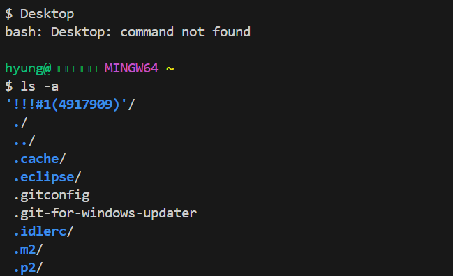 현재 내가 작업하는 폴더(Users/developsoo)를 보여달라는 명령어