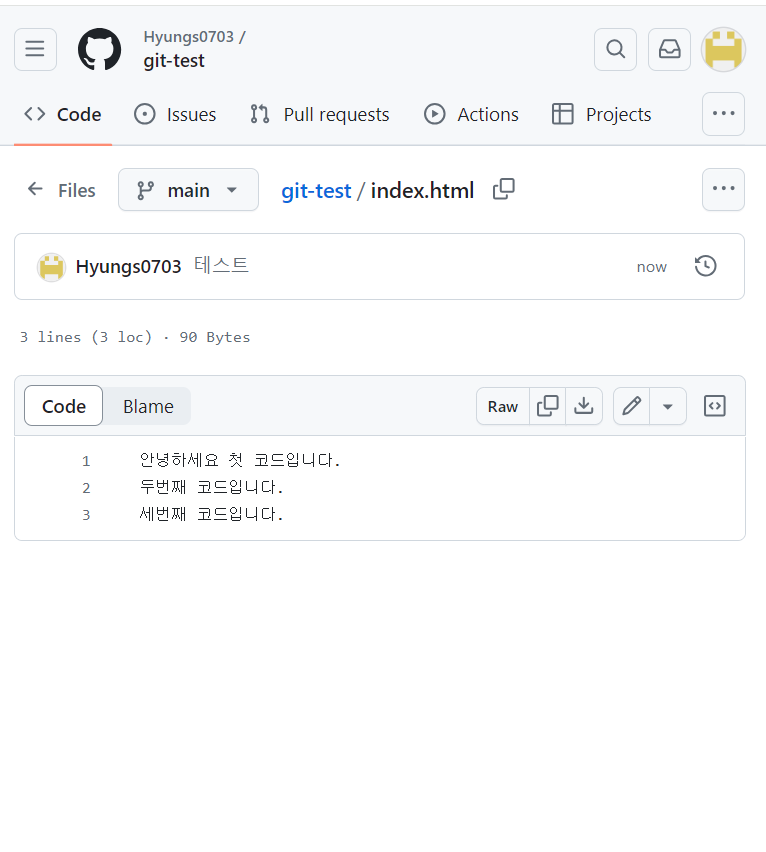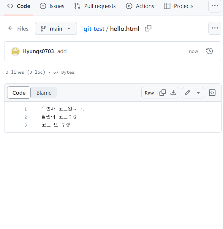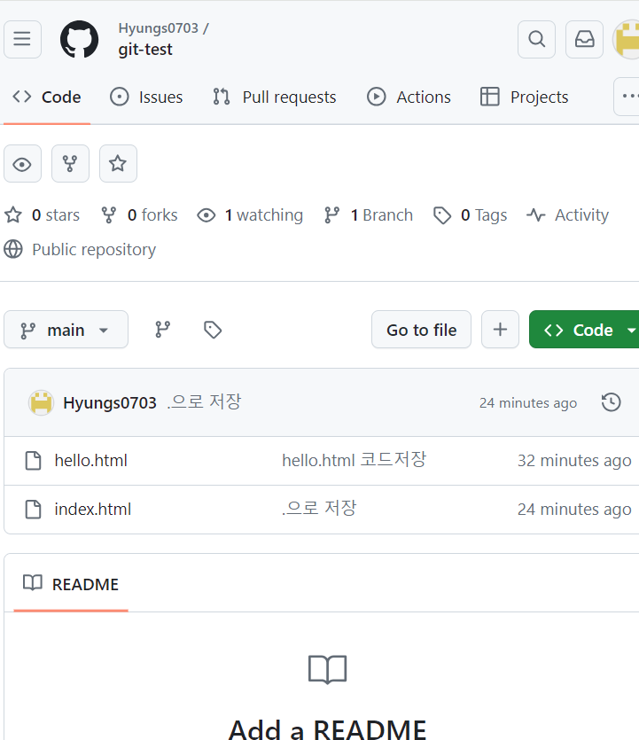수정 후 또 코드를 추가 -> git add . -> git commit -m "수정" -> git push origin main